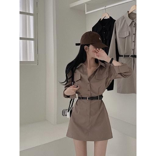 Codibook|韓國 LOVENSOME 短袖翻領綁帶襯衫洋裝[預購]迷你短洋裝 襯衫洋裝 女裝黑色,FREE|灰色,FREE|咖啡色,FREECodibook 韓國女裝購物平台
