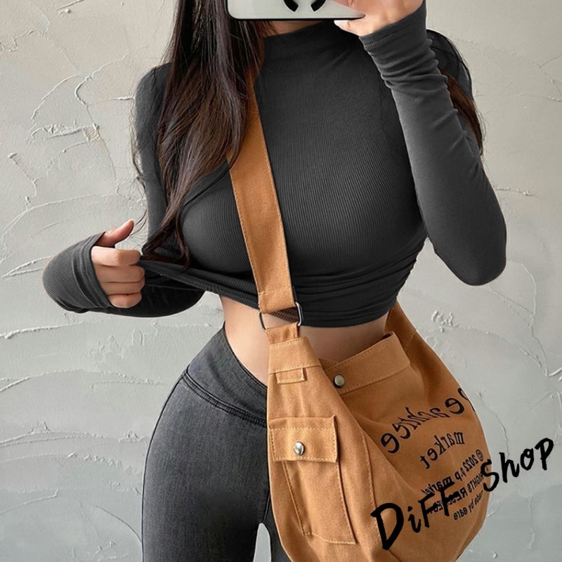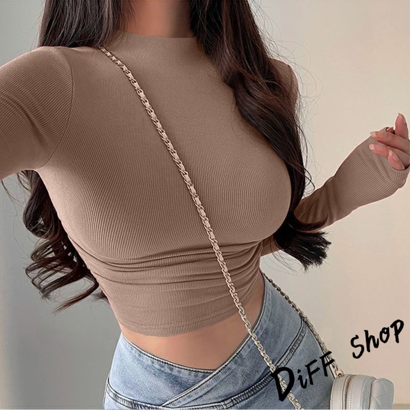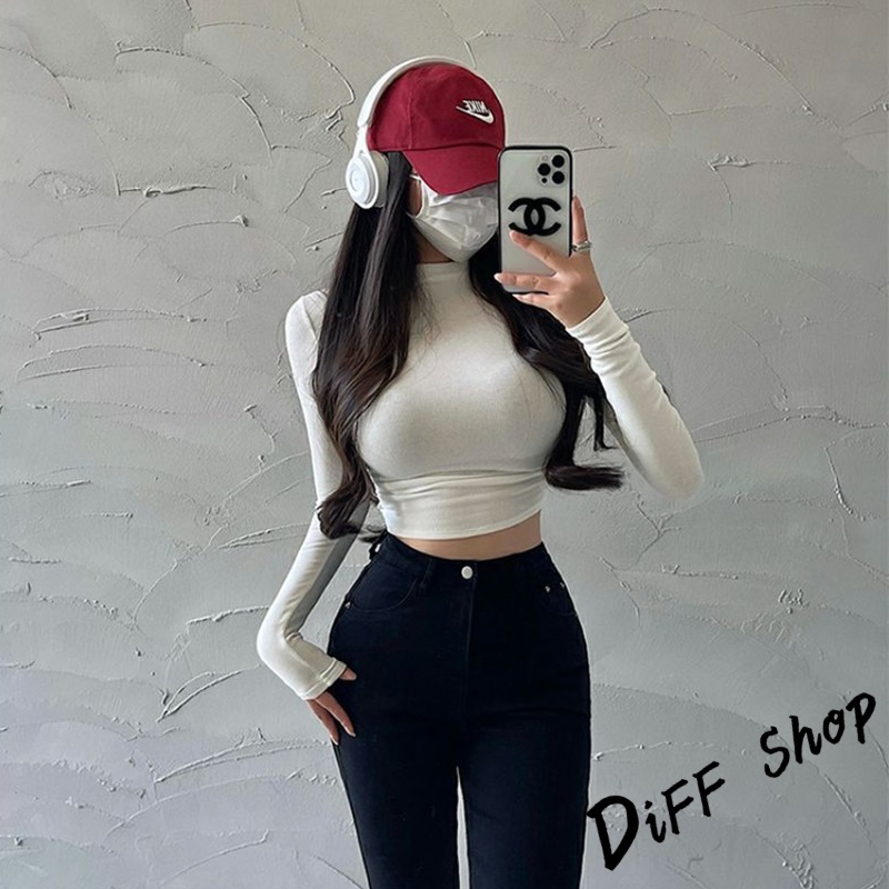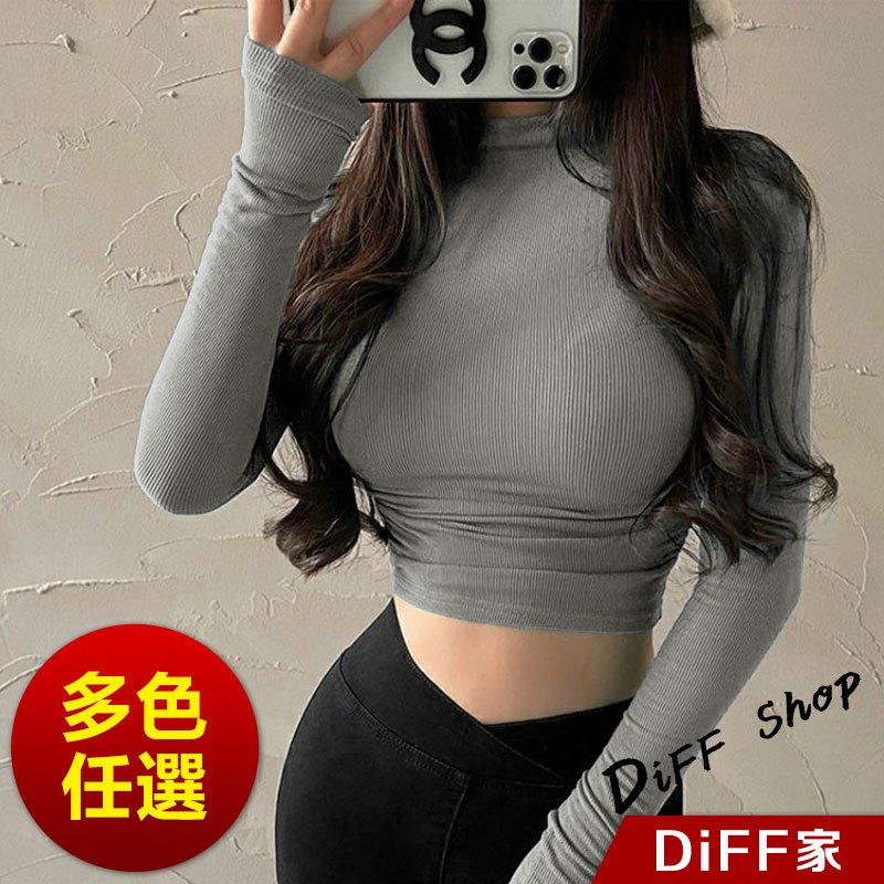 【DIFF】韓版復古緊身收腰顯瘦長袖上衣 衣服 長袖t恤 保暖上衣 冬天女裝 秋冬女裝 高領內搭【W268】【W268】淺灰|【W268】黑色|【W268】白色|【W268】卡其|【W268】藏青|【W268】深灰T-shirtsDiFF shop