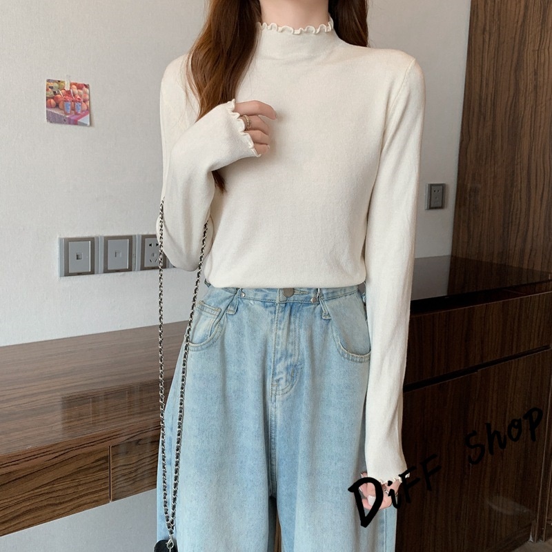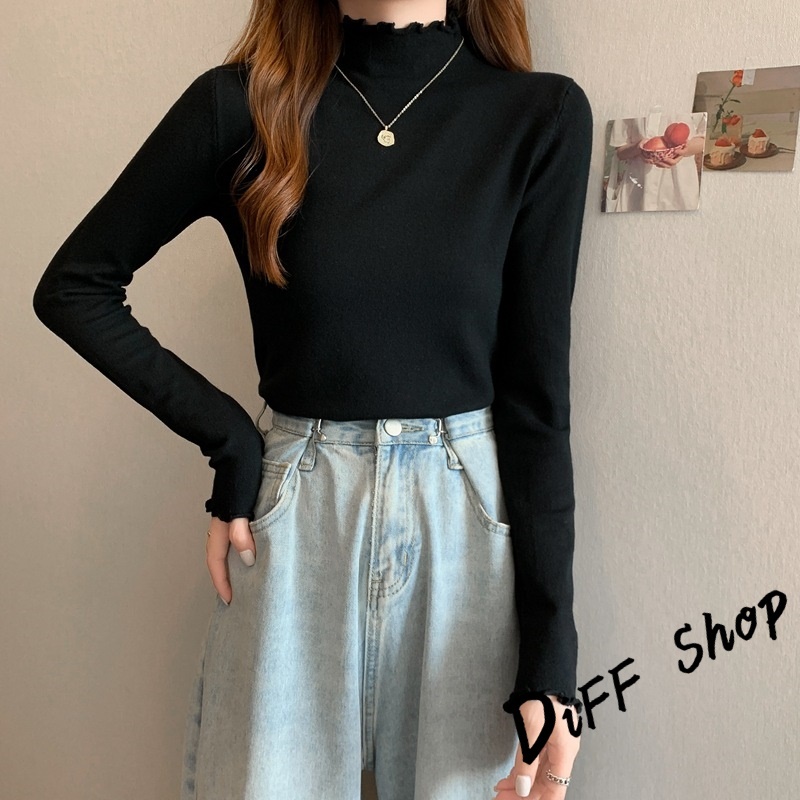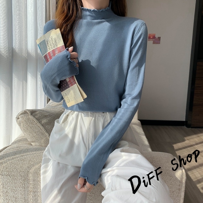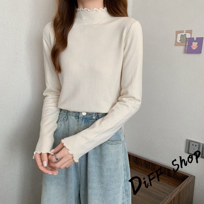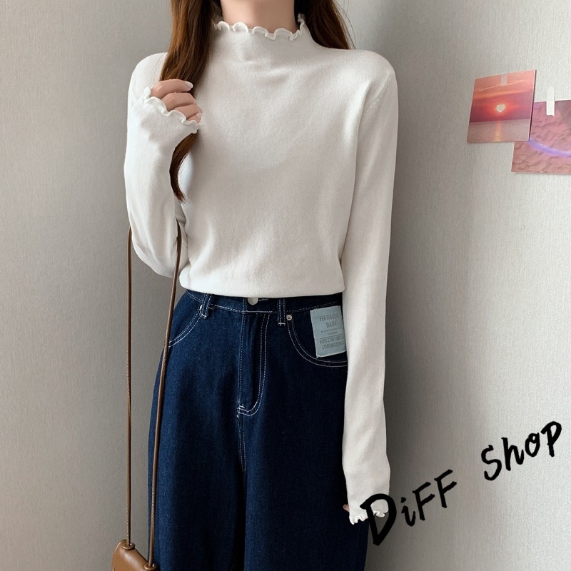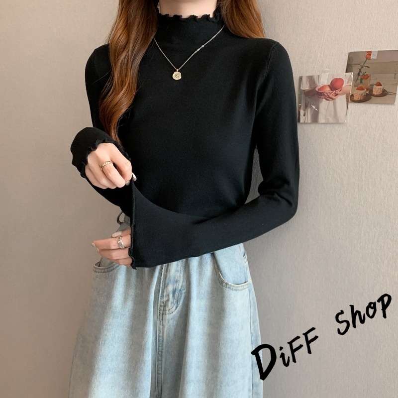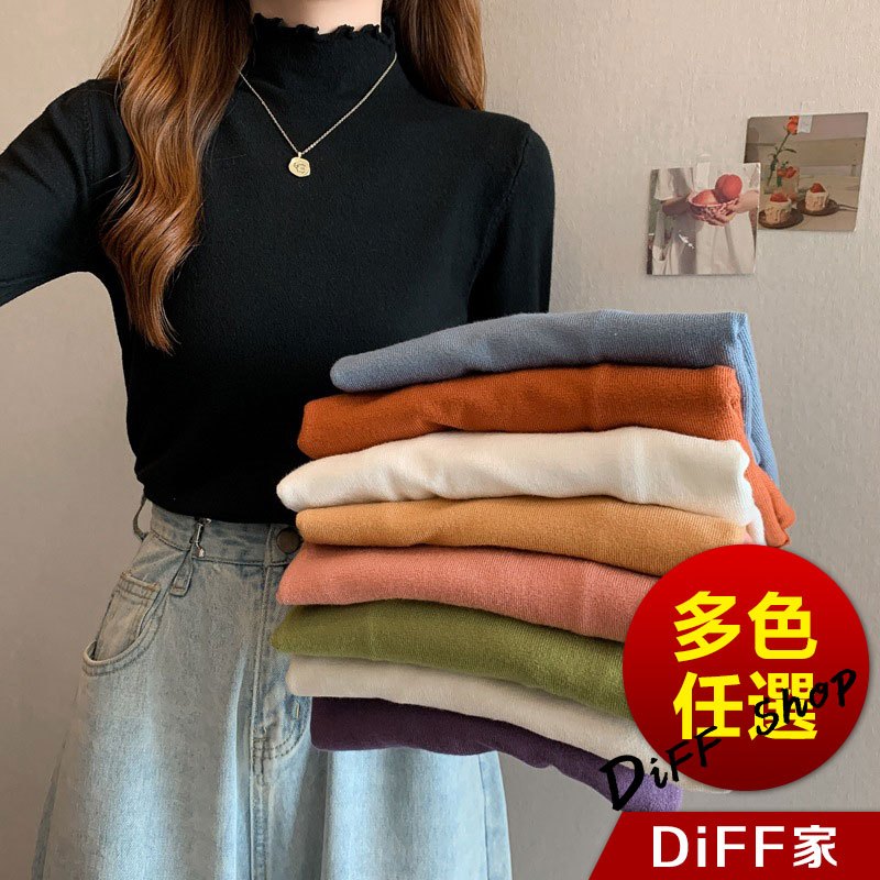 【DIFF】韓版花邊半高領內搭長袖上衣 女裝 衣服 長袖t恤 保暖上衣 冬天女裝 秋冬女裝 發熱衣 高領內搭【W322】【W322】紫色|【W322】黑色|【W322】白色|【W322】粉色|【W322】豆沙綠|【W322】咖啡|【W322】黃色Thermal InnerwearDiFF shop