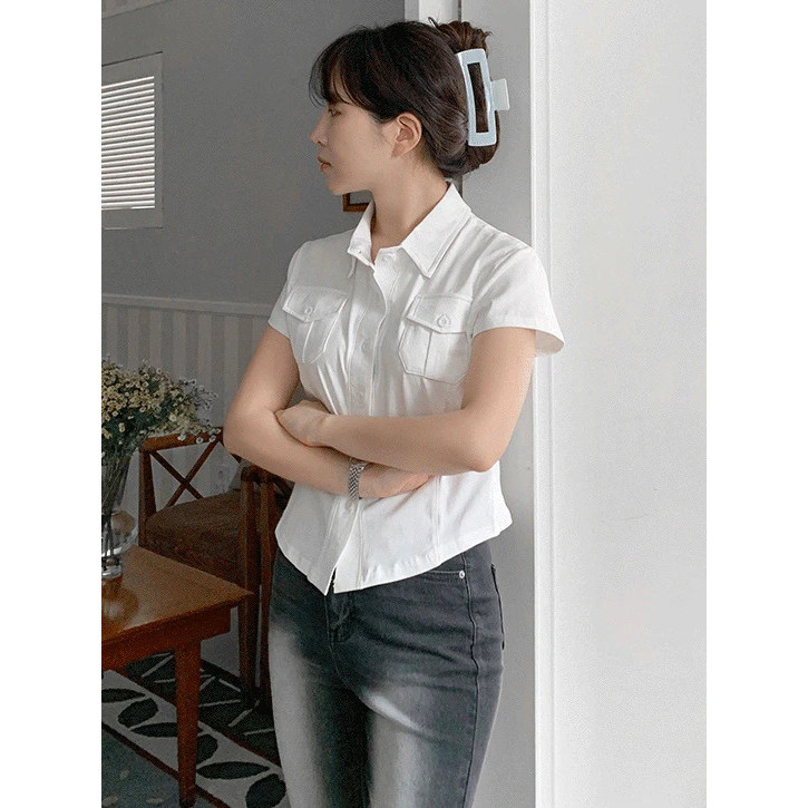 Codibook|韓國 Qnigirls 六口袋短版襯衫[預購]襯衫 女裝灰米白色|象牙白-JH 著用|灰色|黑色Shirts & BlousesCodibook 韓國女裝購物平台