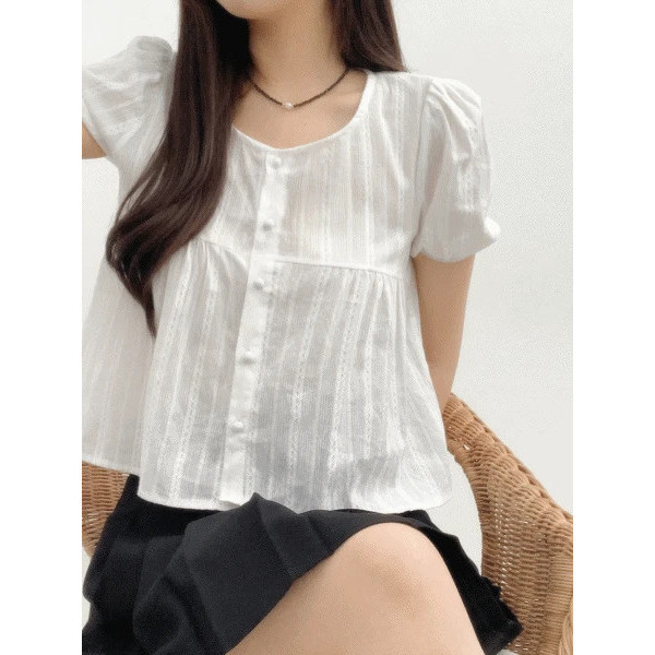 Codibook|韓國 lipkko 荷葉袖排扣圓領短袖襯衫[預購]雪紡襯衫 女裝白色,ONE SIZE|黑色,ONE SIZEShirts & BlousesCodibook 韓國女裝購物平台