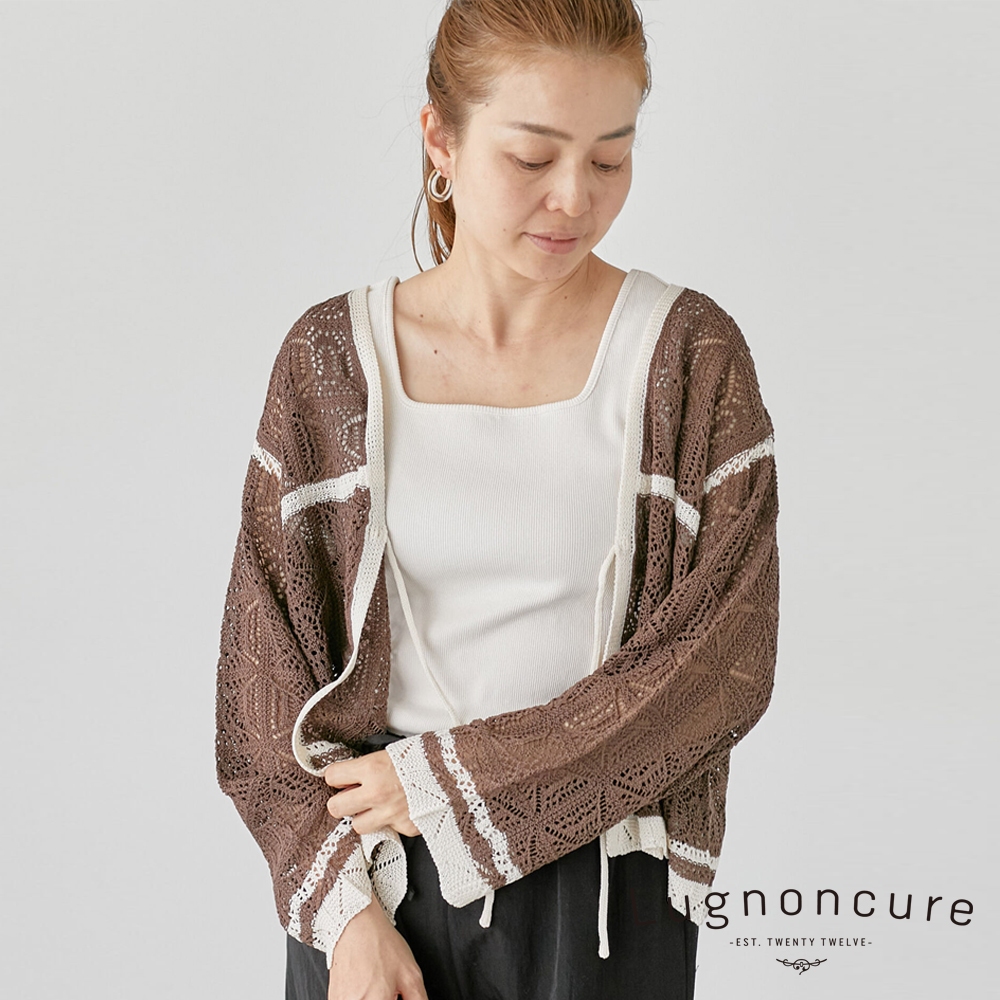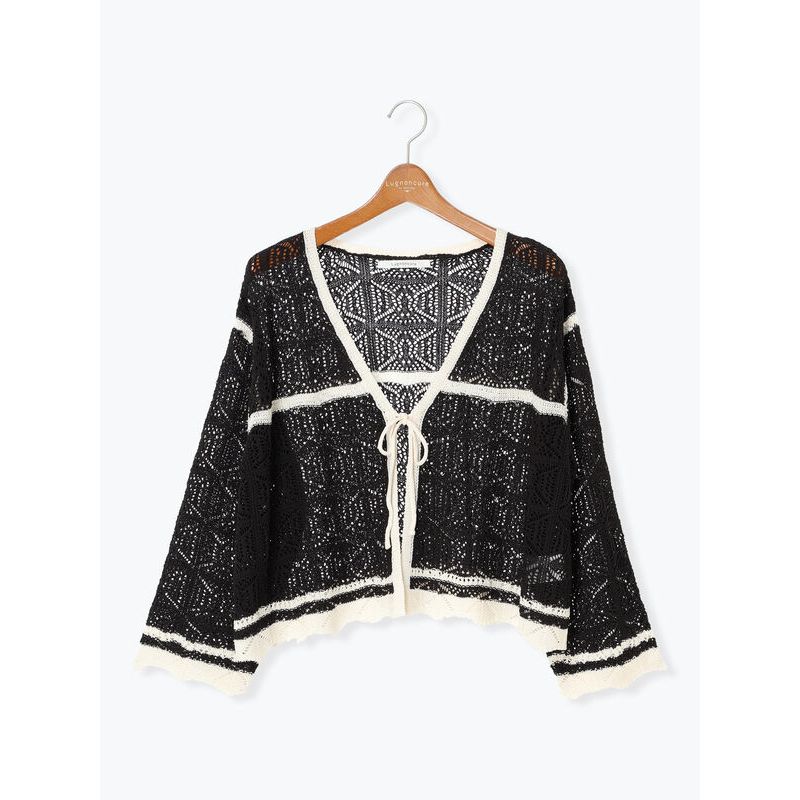 Lugnoncure 滾邊配色鉤針造型短版開襟罩衫(0F000801410)象牙色F|黑色F|棕色FOthersearth music&ecology Select Store