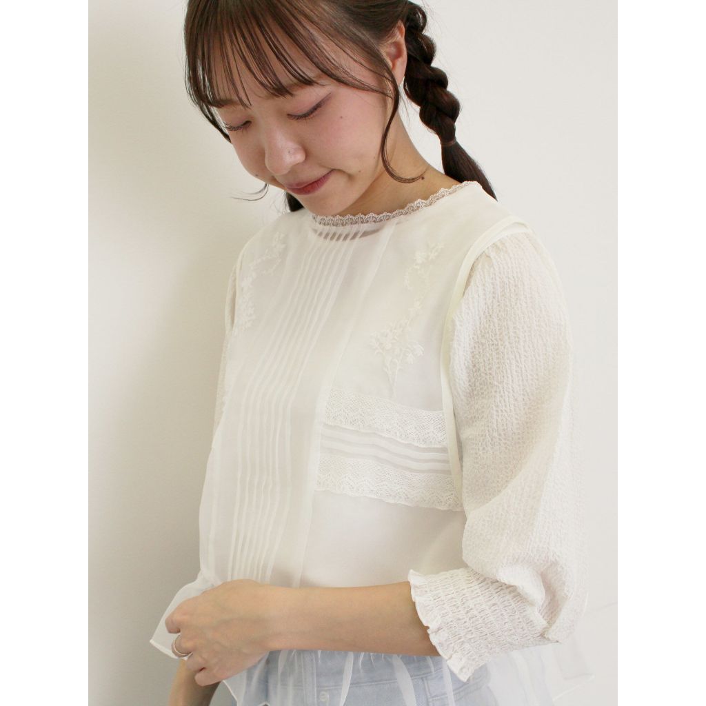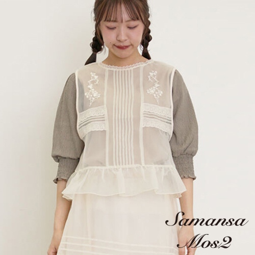 Samansa Mos2 花卉刺繡蕾絲邊透膚後綁結背心(0F000726510)象牙色F|本白F|黑色FT-shirtsearth music&ecology Select Store