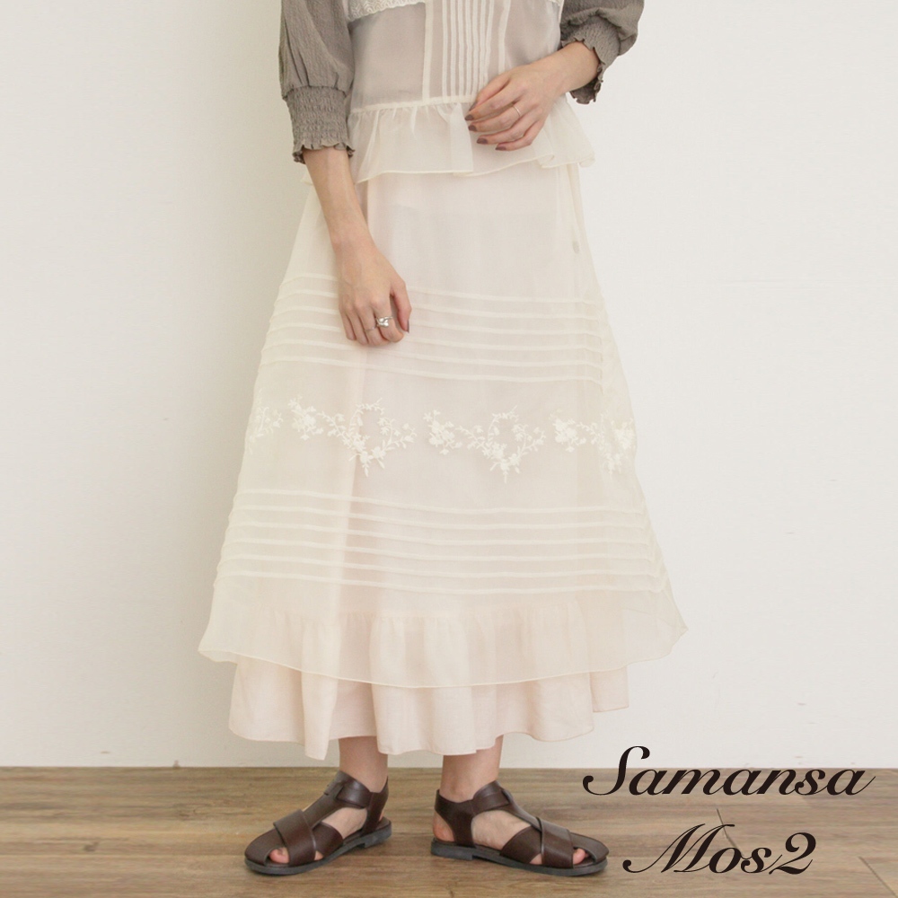 Samansa Mos2 柔美薄紗花卉刺繡長裙-附襯裙(0F000728110)象牙色F|本白F|黑色Fearth music&ecology Select Store