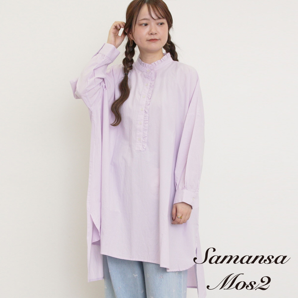 Samansa Mos2 荷葉摺邊半排釦立領長版襯衫(0F000579810)本白F|黑色F|米色F|紫色FShirts & Blousesearth music&ecology Select Store