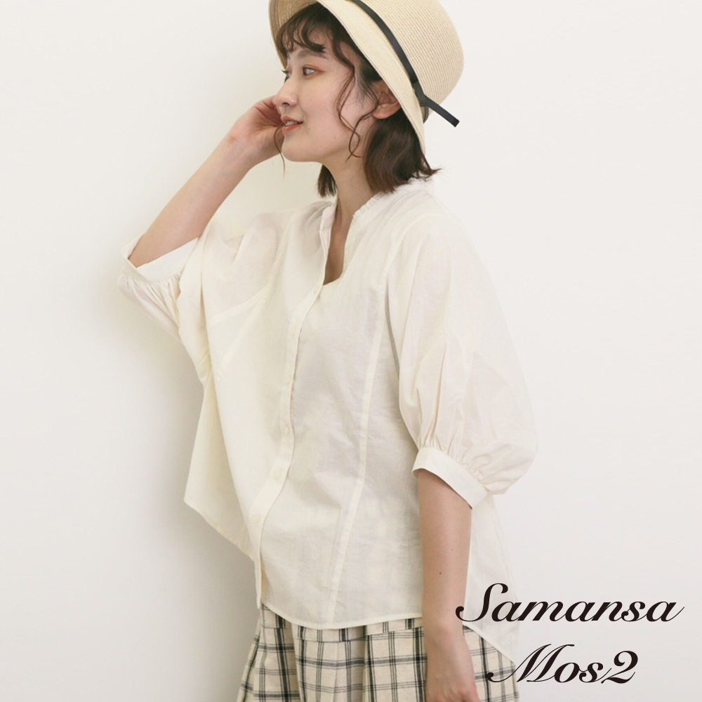 Samansa Mos2 可愛燈籠袖船領排釦休閒襯衫(0F000889410)象牙色F|炭灰色F|米色F|黃色FShirts & Blousesearth music&ecology Select Store