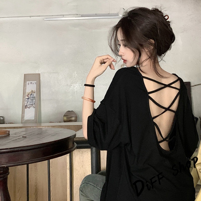 【DIFF】韓版小心機寬鬆露背連衣裙 短袖上衣 衣服 夏天女裝 長板上衣 長版t恤 女裝 短袖t恤女【T652】【T652】白色|【T652】灰色|【T652】黑色T-shirtsDiFF shop