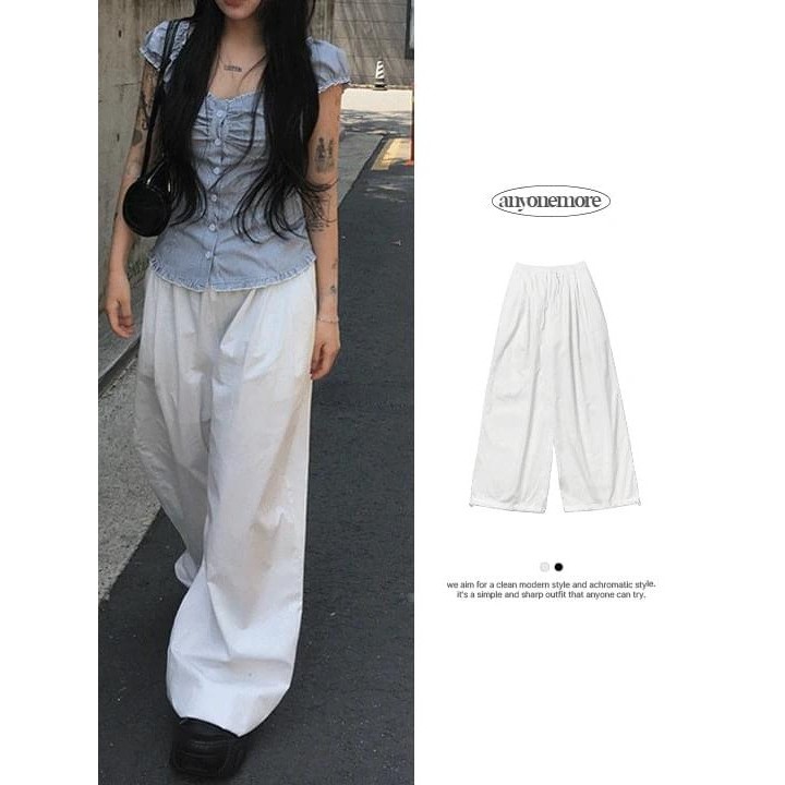 Codibook|韓國 anyonemore 夏日棉質鬆緊腰寬褲[預購]長褲 闊腿褲 女裝free,象牙白|free,黑色PantsCodibook 韓國女裝購物平台