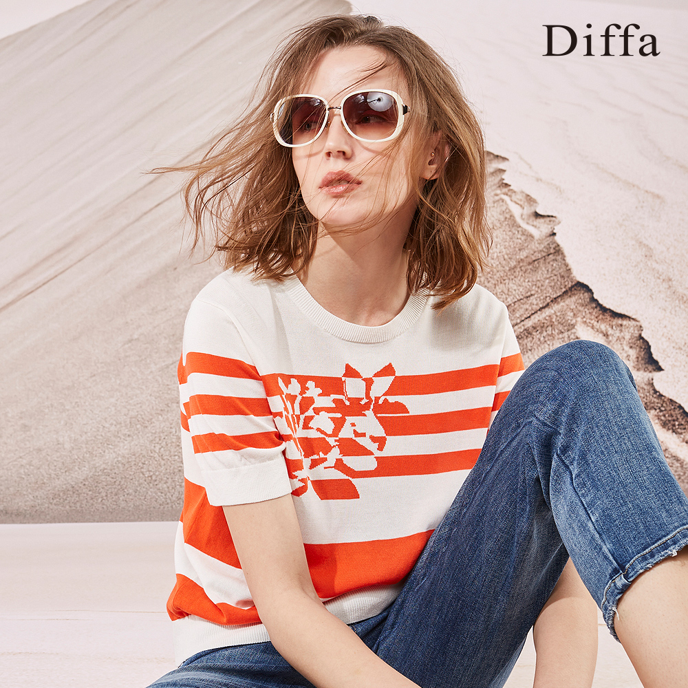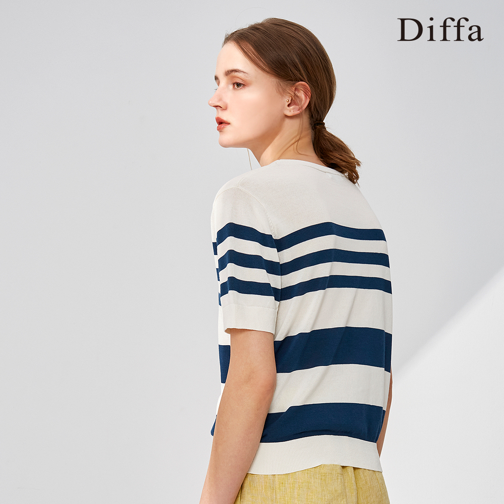【Diffa】撞色條紋緹花針織衫3768-2109