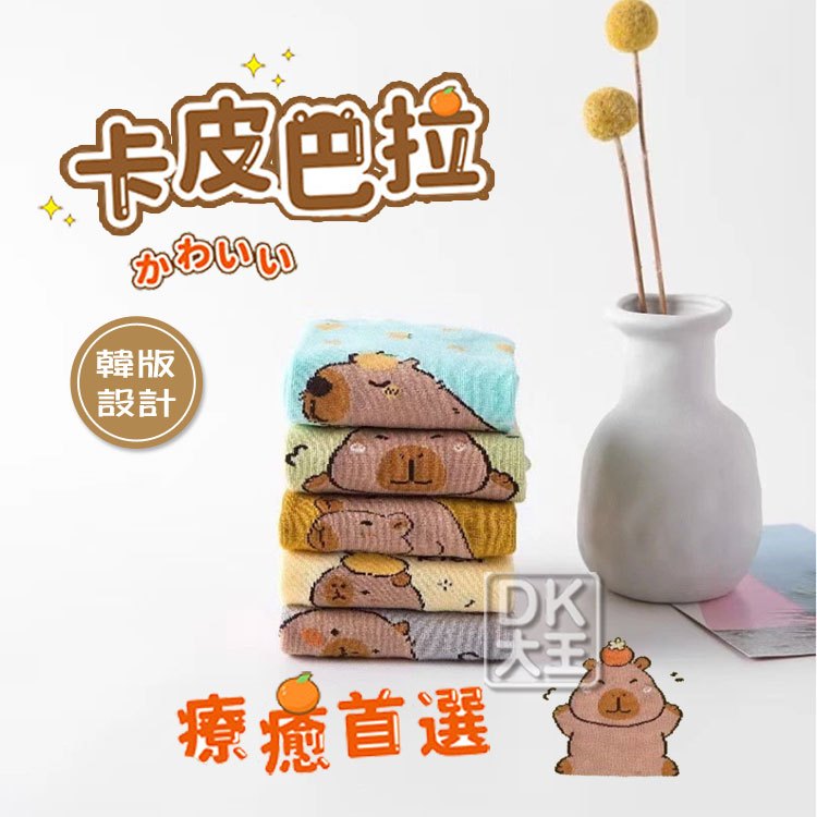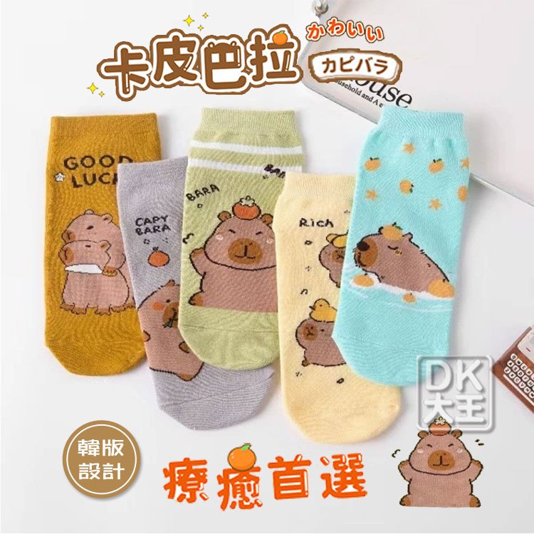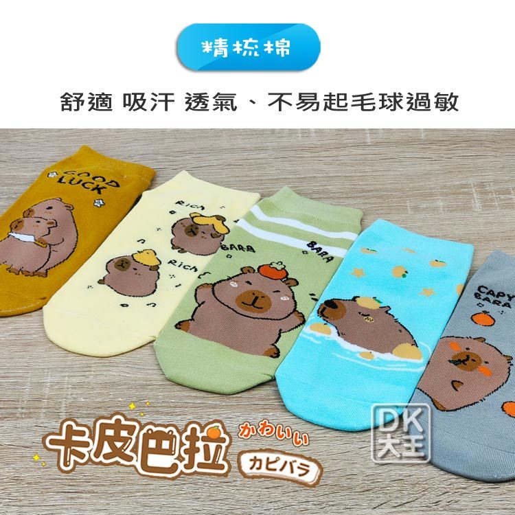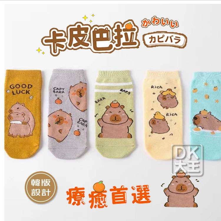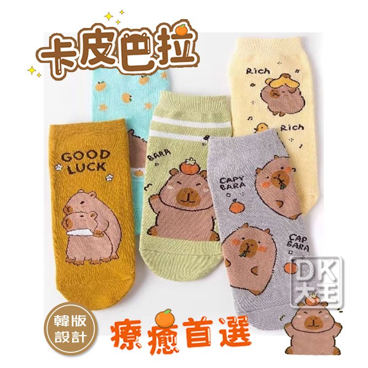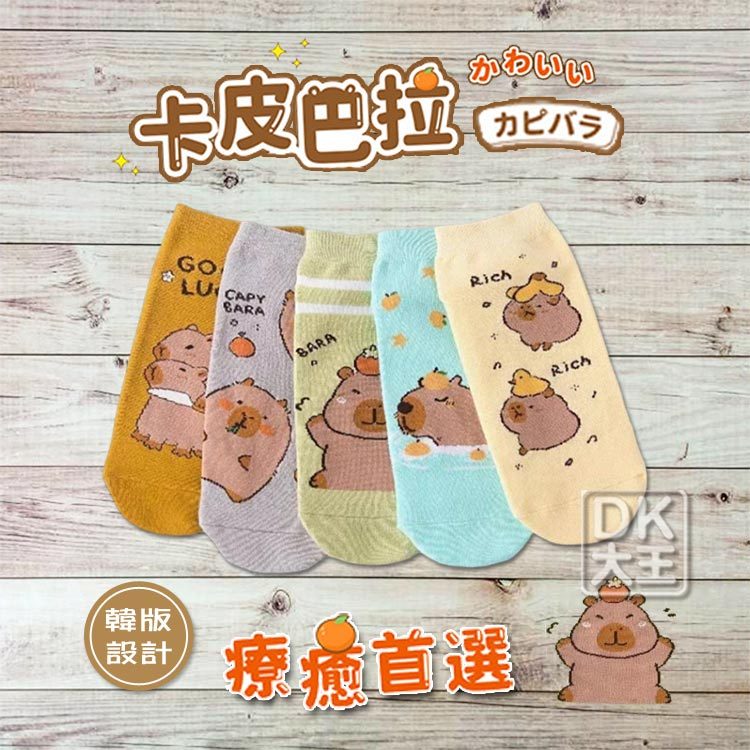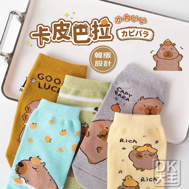 韓版 卡皮巴拉 精梳棉 襪子 直板襪 船襪 可愛水豚 CAPYBARA【DK大王】單雙(隨機出貨)/20~26cm/1雙|(5款各1雙)/20~26cm/1組|102款單雙(隨機出貨)/20~26cm|102款(5入組)/20~26cm/1組SocksDK大王旗艦店