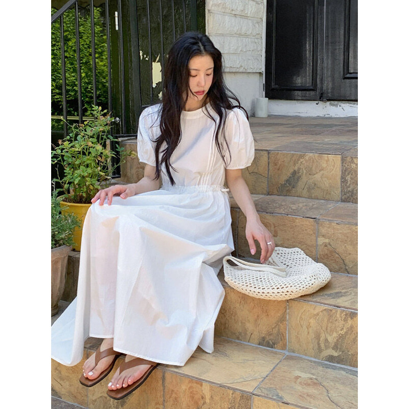Codibook|韓國 MORENNE 細繩棉質泡泡短袖長洋裝[預購]長洋裝 女裝象牙白Codibook 韓國女裝購物平台