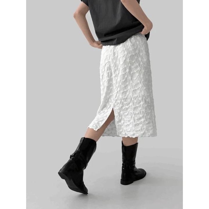 Codibook|韓國 MAENIQUE 蕾絲質感開衩中長裙[預購]裙子 女裝象牙白|黑色Codibook 韓國女裝購物平台
