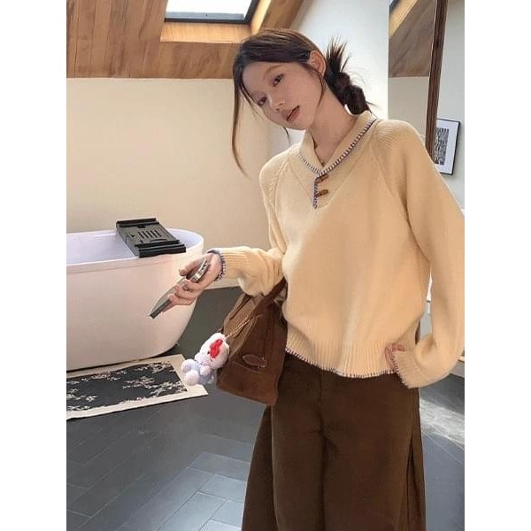 Codibook|韓國 Wansmall 리키 縫線V領針織毛衣[預購]針織衫 毛衣 女裝黃色,FREE-(kn32536)Codibook 韓國女裝購物平台