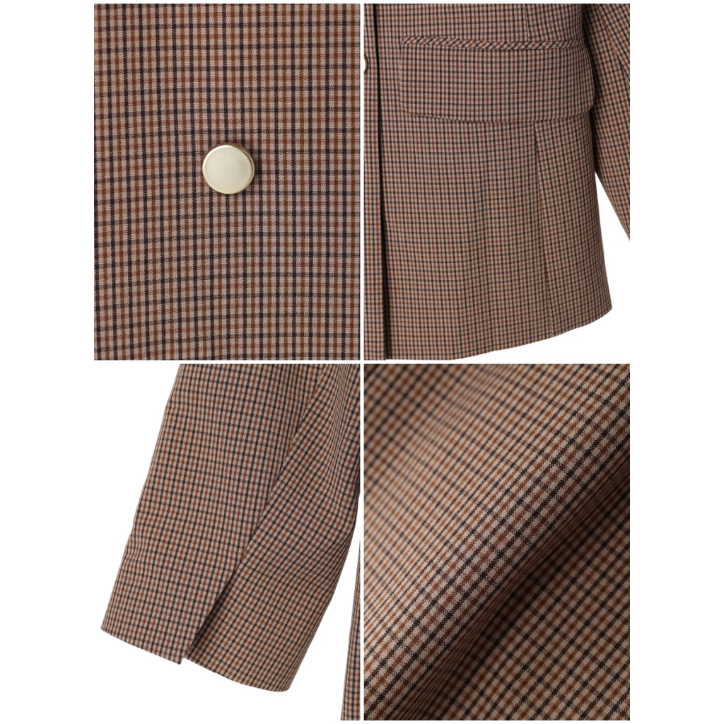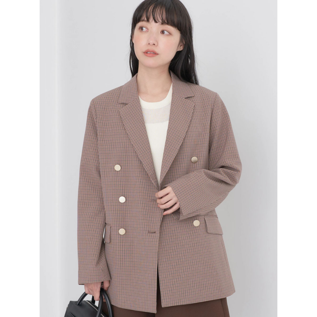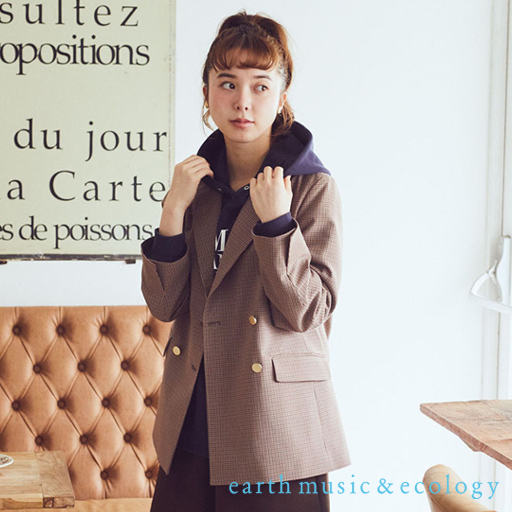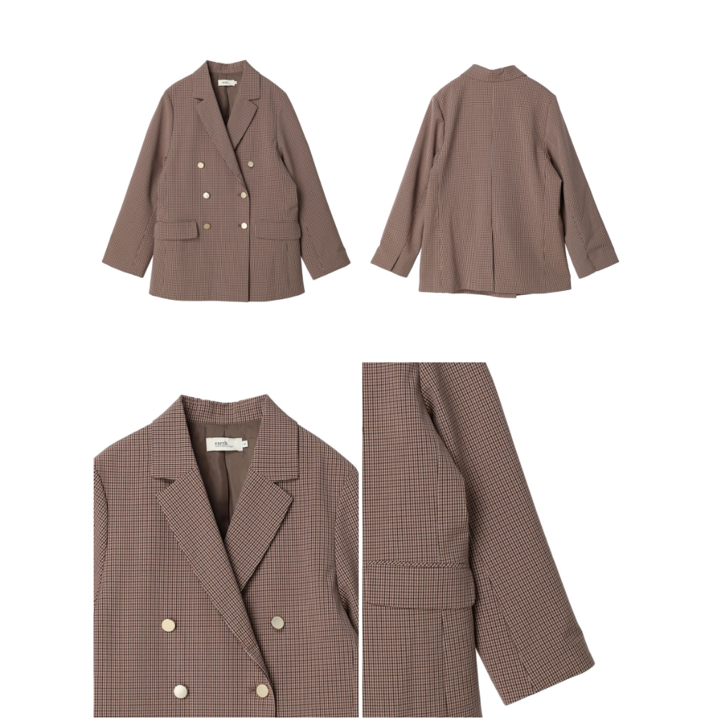 earth music&ecology 素面/格紋金色雙排釦訂製感西裝外套(1N33L0Y0200)格紋M|格紋LBlazersearth music&ecology Select Store
