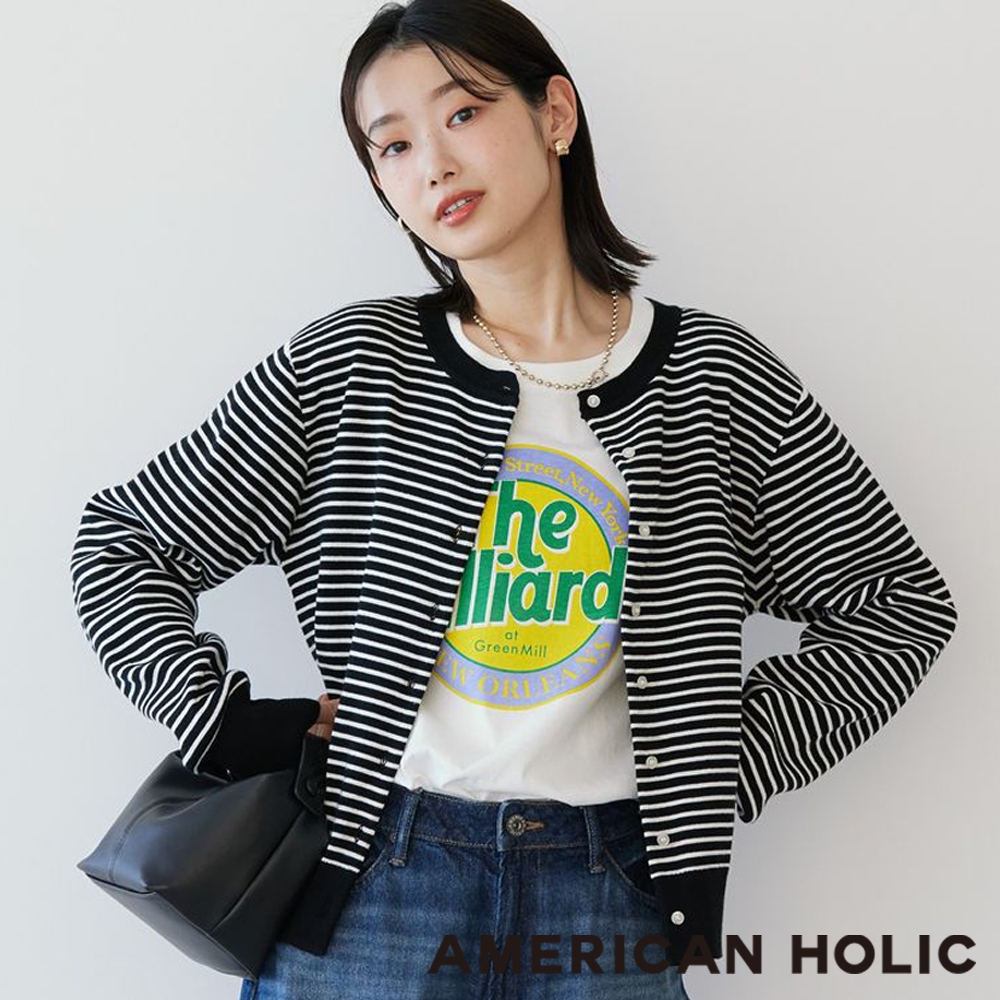 AMERICAN HOLIC 素面/橫條紋圓領針織外套(HA51L2D0100)象牙色M|象牙色L|混灰色M|混灰色L|黑色M|黑色L|橫條紋深藍色M|橫條紋深藍色L|黑條紋M|黑條紋Learth music&ecology Select Store