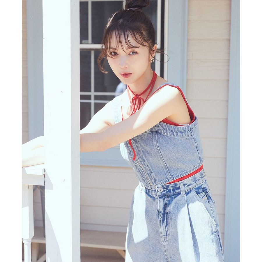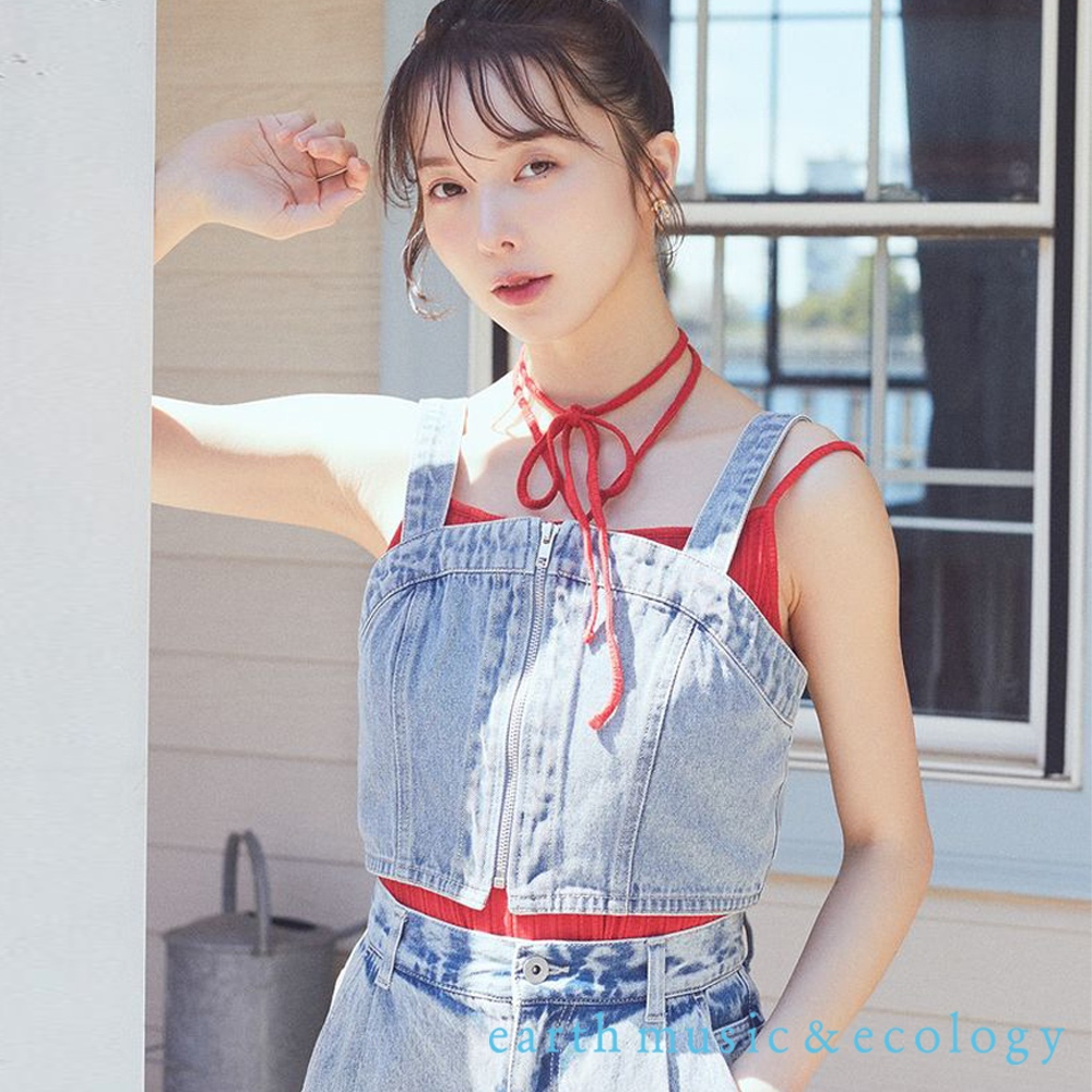 earth music&ecology 前拉鍊短版牛仔背心上衣(01000299500)黑色F|淡靛藍色FTube Topsearth music&ecology Select Store