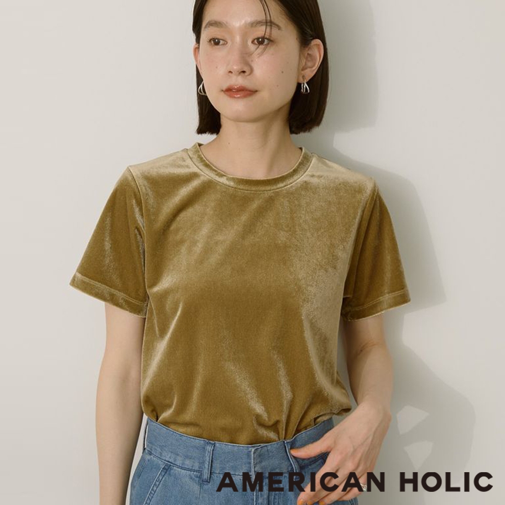 AMERICAN HOLIC 光澤絲絨感圓領上衣(0H000051200)炭灰色M|橄欖色M|淡褐色MT-shirtsearth music&ecology Select Store