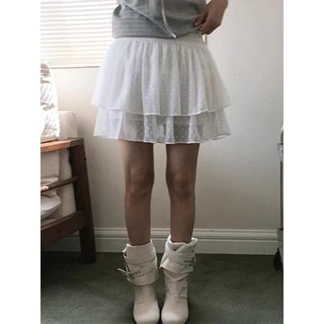 Codibook|韓國 DAILYJOU 雙層不規則蕾絲拼接荷葉裙擺雪紡短裙[預購]裙子 蛋糕裙 女裝象牙白|黑色Codibook 韓國女裝購物平台