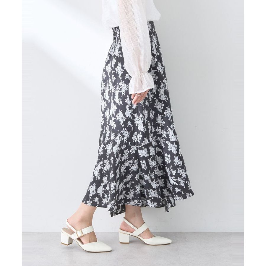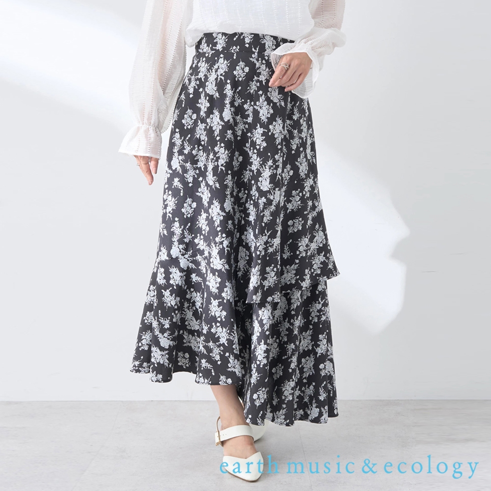earth music&ecology 花卉圖案不對稱層次剪裁長裙(1N43L0L0200)黑色M|米色M|淡青色Mearth music&ecology Select Store