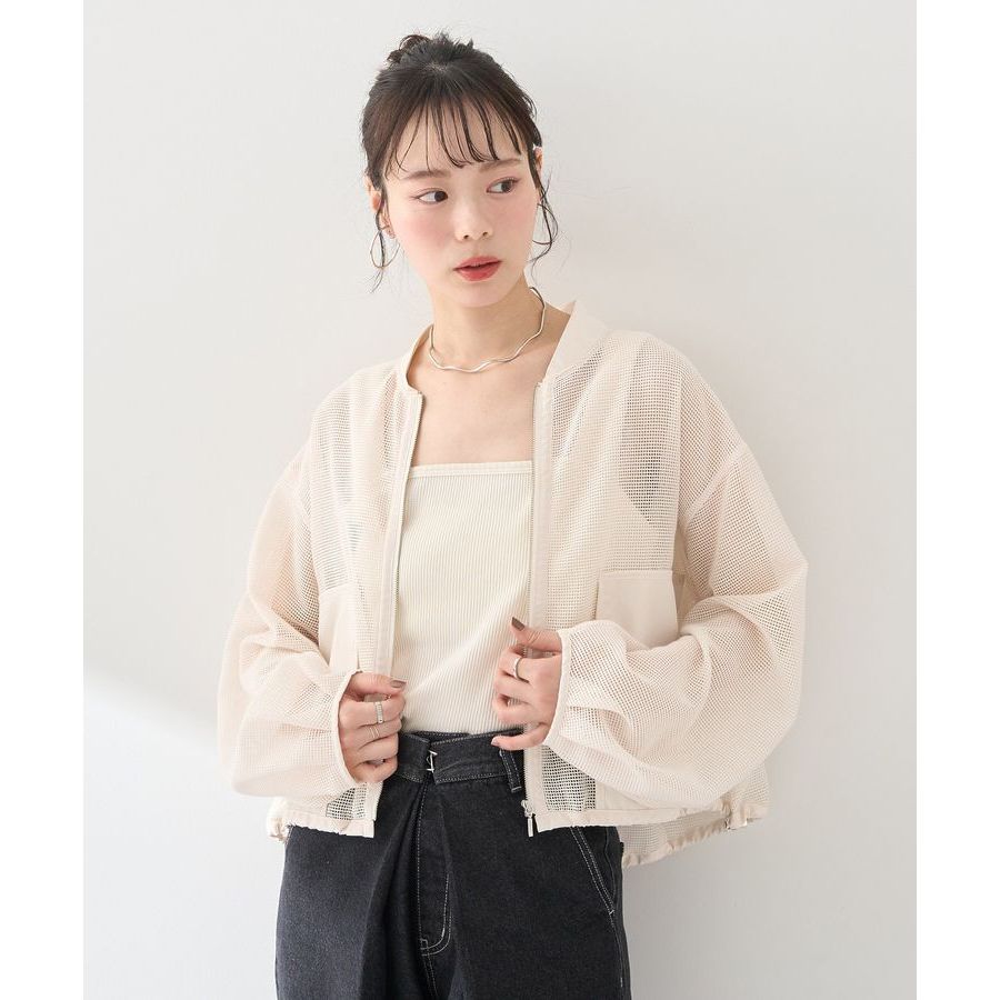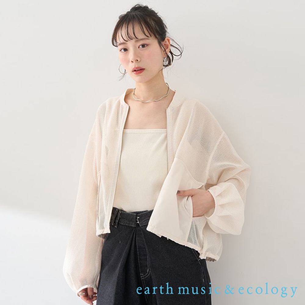 earth music&ecology 透明感網眼下擺抽繩拉鏈設計外套(01000003100)象牙色F|灰色F|黑色FJacketsearth music&ecology Select Store