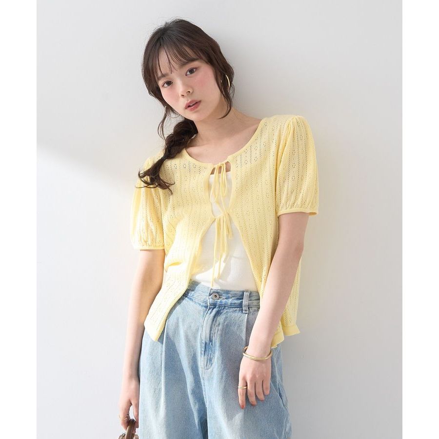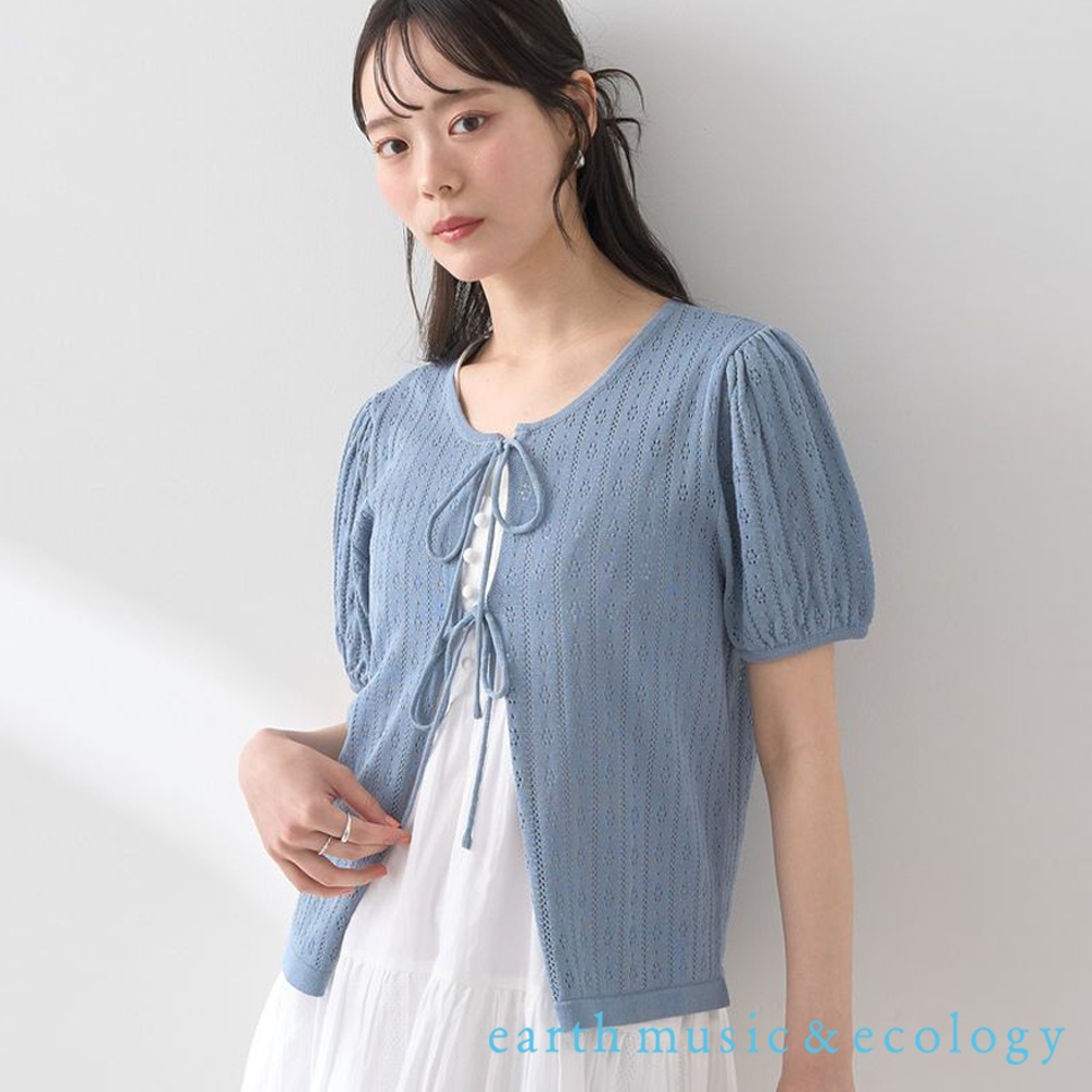 earth music&ecology 精緻鏤空鉤織雙綁結短袖罩衫(01000695500)