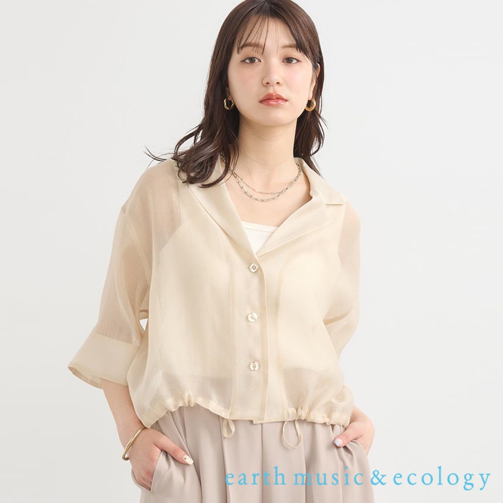 earth music&ecology 透明感抽繩下擺中短版剪裁襯衫(01000031902)黑色F|淺米白FShirts & Blousesearth music&ecology Select Store