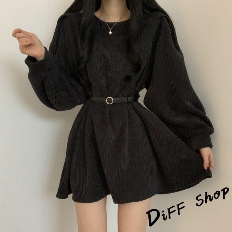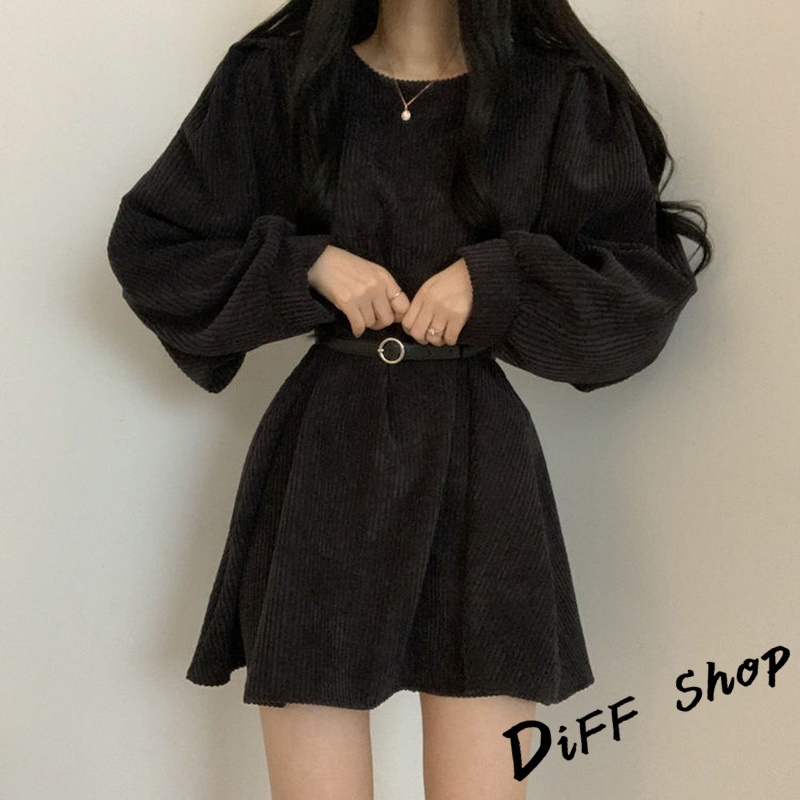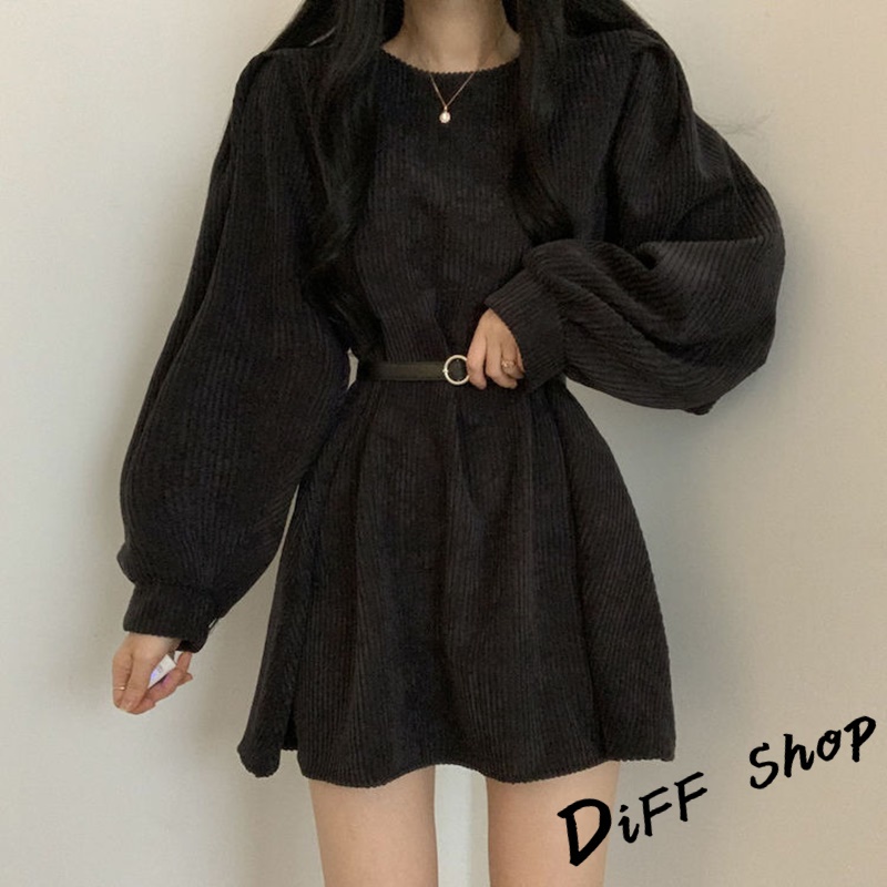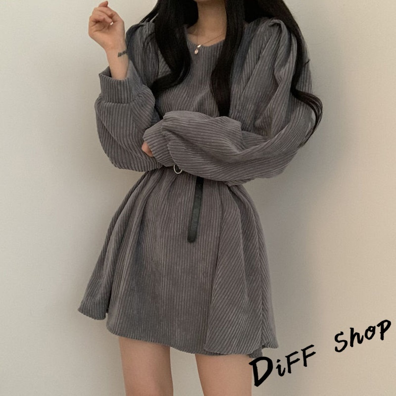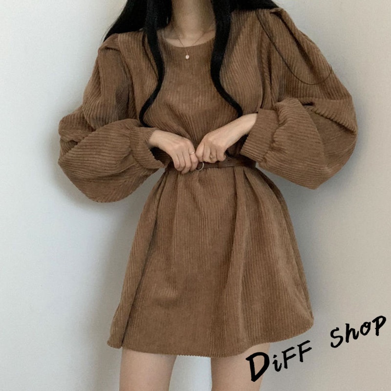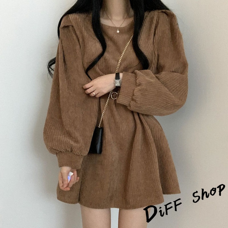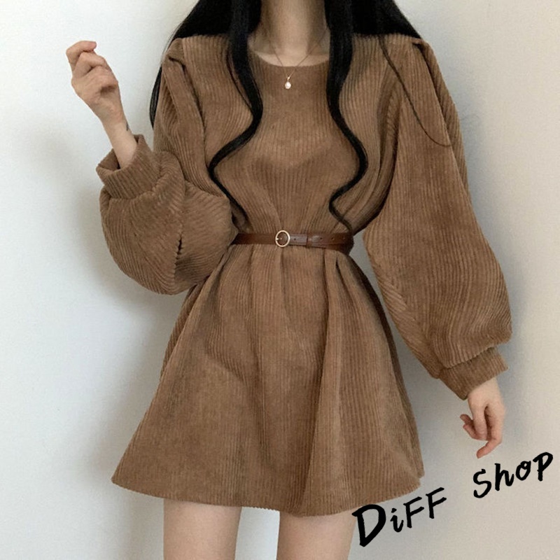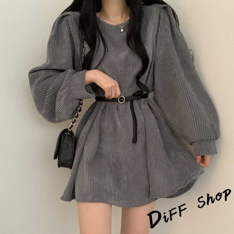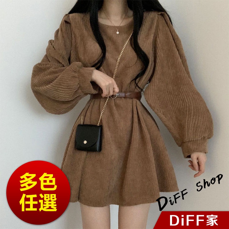 【DIFF】韓版復古小個子氣質泡泡袖燈芯絨洋裝 連衣裙 套裝 長袖上衣 女裝 衣服 寬鬆上衣 顯瘦上衣 冬裝【S161】【S161】奶茶色|【S161】黑色|【S161】灰色DiFF shop