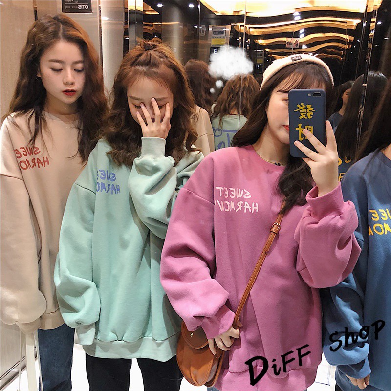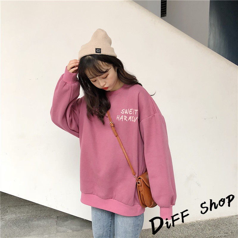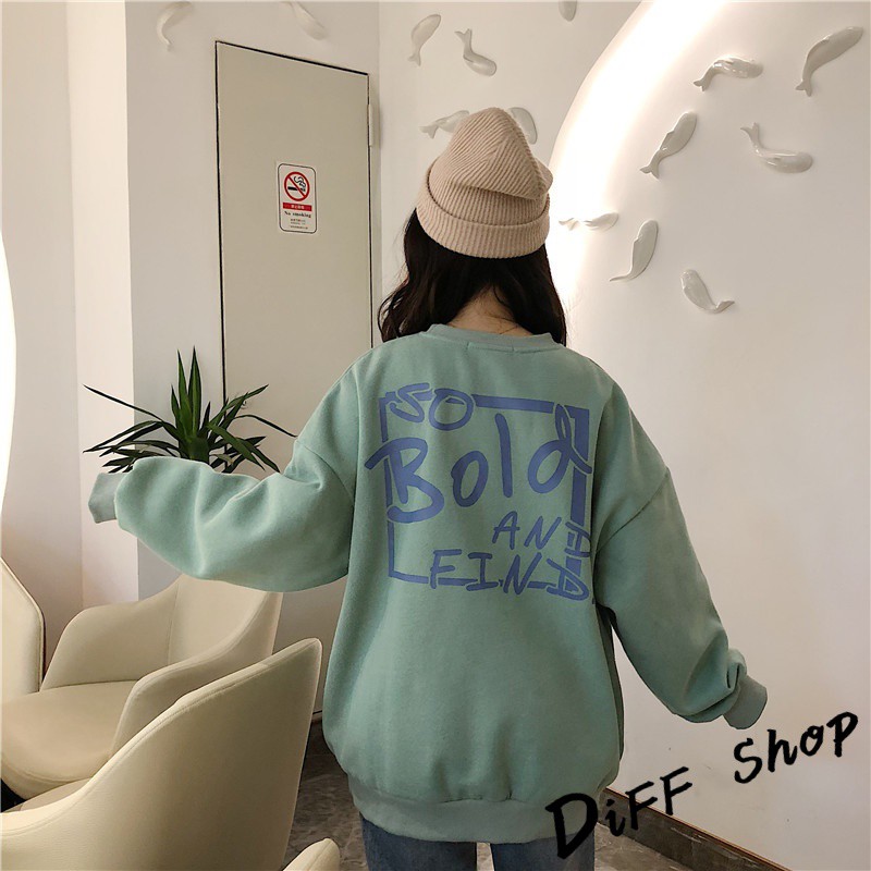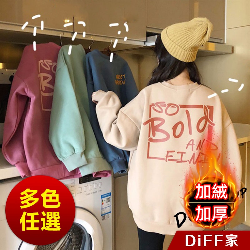 【DIFF】韓版寬鬆圓領內刷毛字母大學T 長袖上衣 長袖t恤 女裝 衣服 寬鬆上衣 顯瘦上衣 發熱衣【W183】【W183】粉色|【W183】綠色|【W183】杏色|【W183】藍色SweatshirtsDiFF shop
