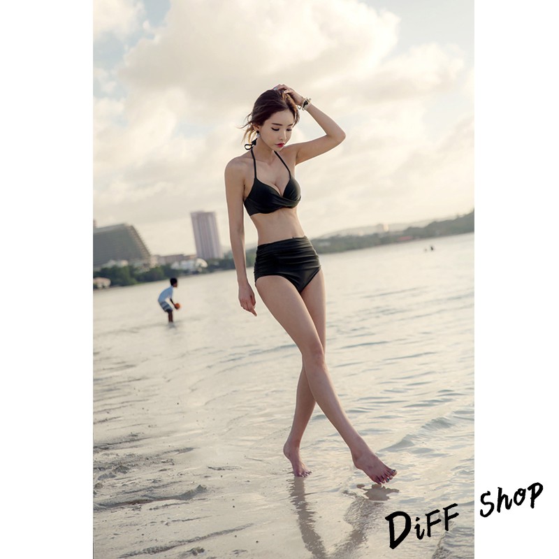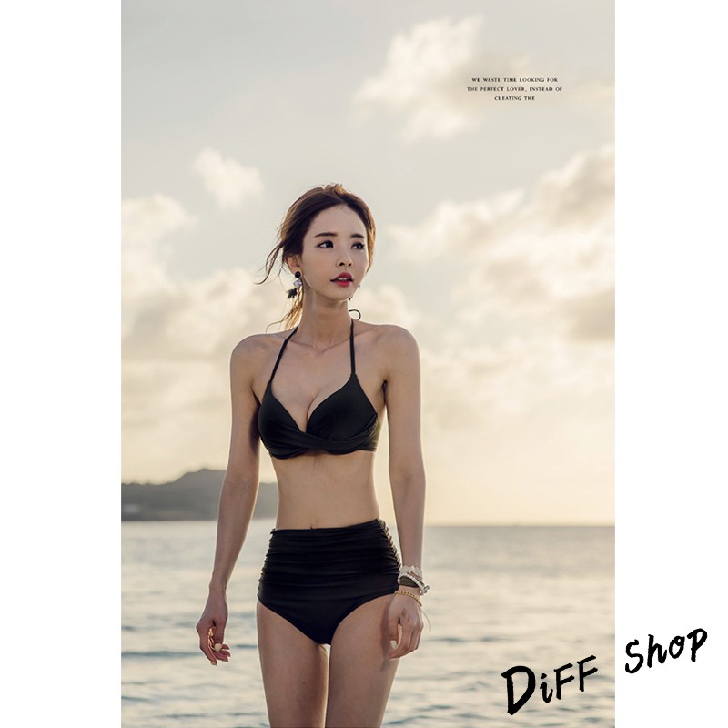 【DIFF】韓版綁脖美背修身顯瘦泳裝 比基尼 分體式泳衣 兩件式泳裝 背心 小可愛 上衣 女裝 S62【S133】【S62】黑色OthersDiFF shop