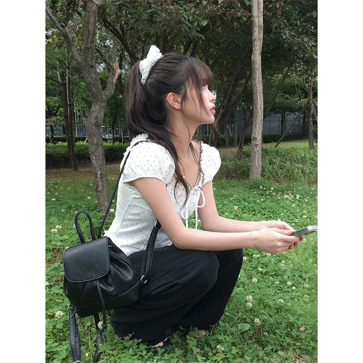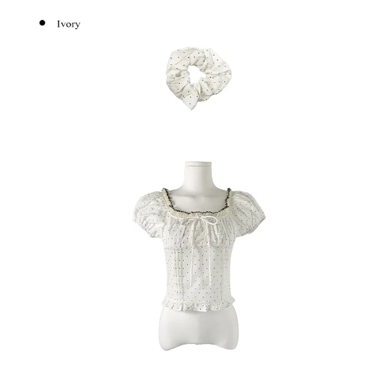 Codibook|韓國 anyonemore 點點蕾絲泡泡短袖襯衫[預購]雪紡襯衫 女裝free,象牙白|free,深藍色(海軍藍)Shirts & BlousesCodibook 韓國女裝購物平台