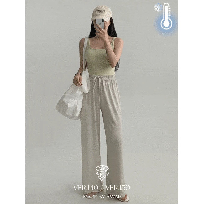 Codibook|韓國 AWAB 清涼涼感寬版鬆緊褲[預購]長褲 女裝米褐色(140/米褐色)|米褐色(150/米褐色)|黑色(140/黑色)|黑色(150/黑色)PantsCodibook 韓國女裝購物平台