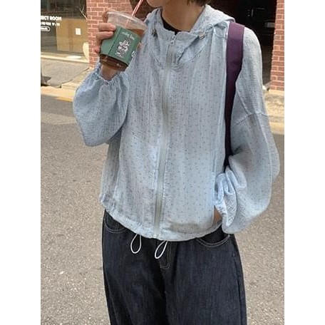 Codibook|韓國 DAILYJOU 風花印花連帽防風外套[預購]夾克 防風外套 女裝象牙白|天空藍JacketsCodibook 韓國女裝購物平台