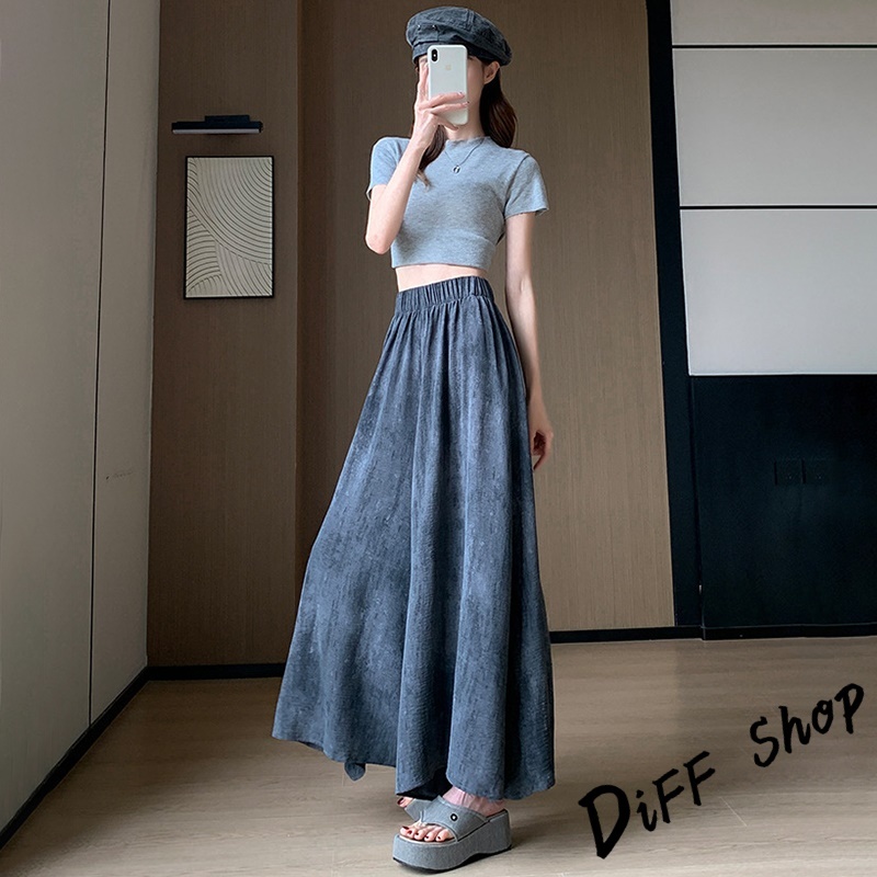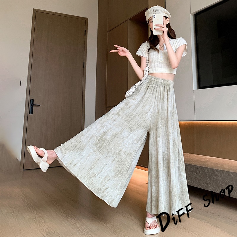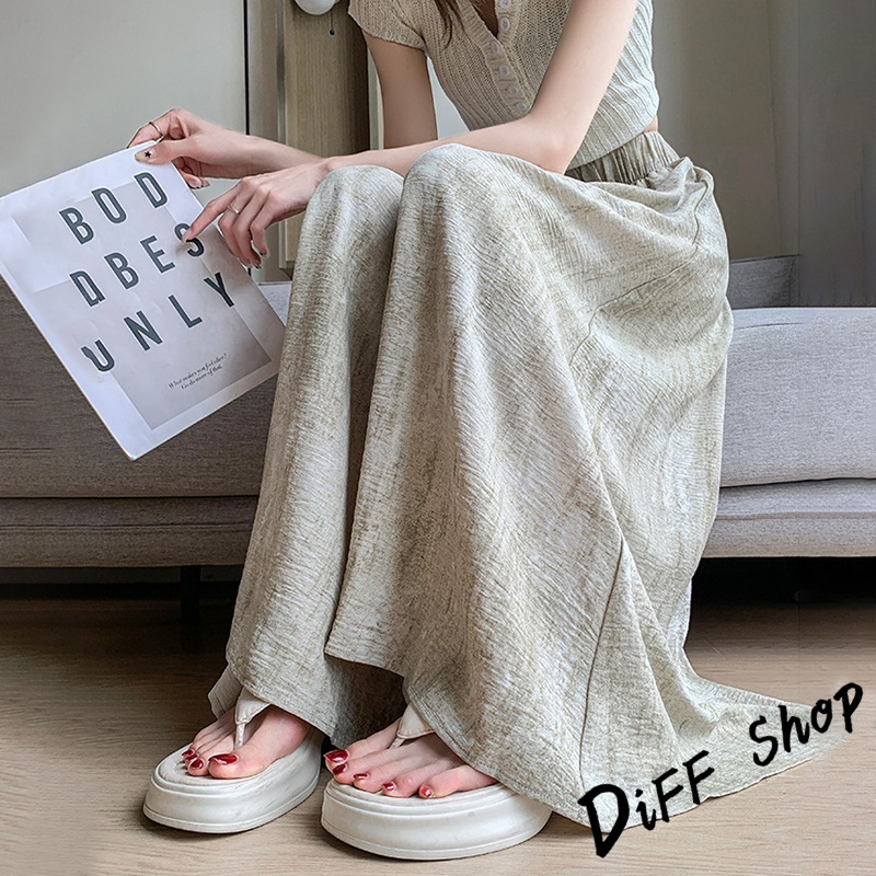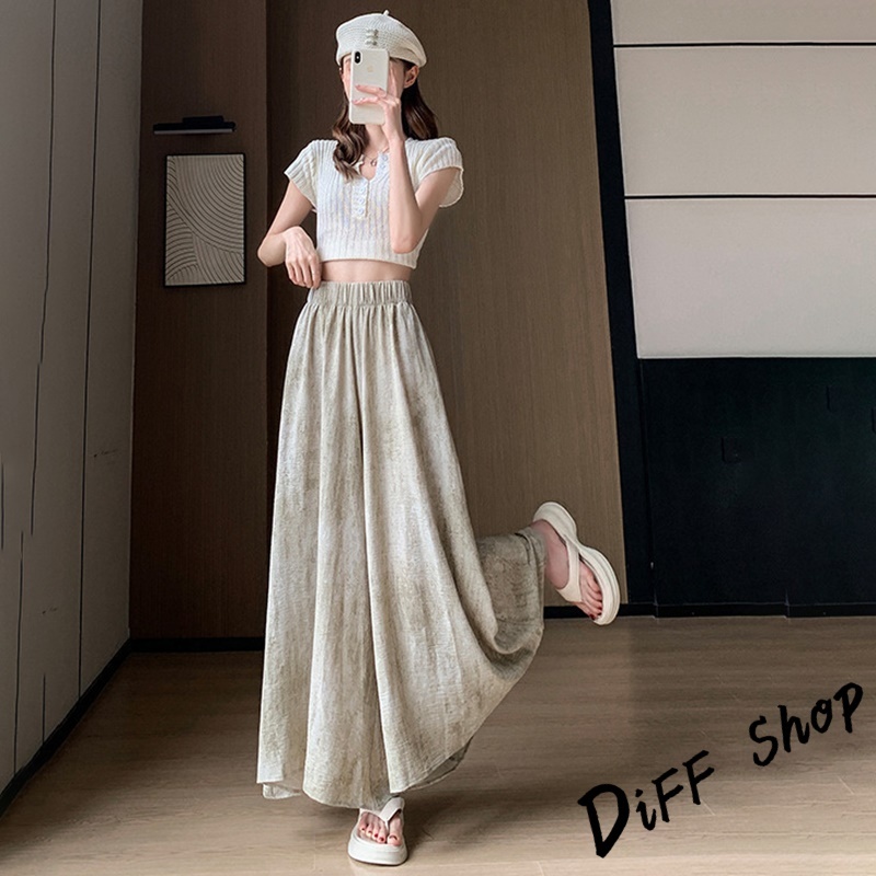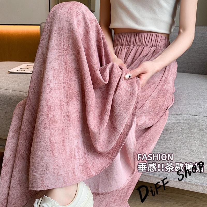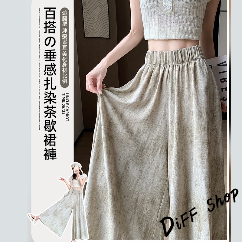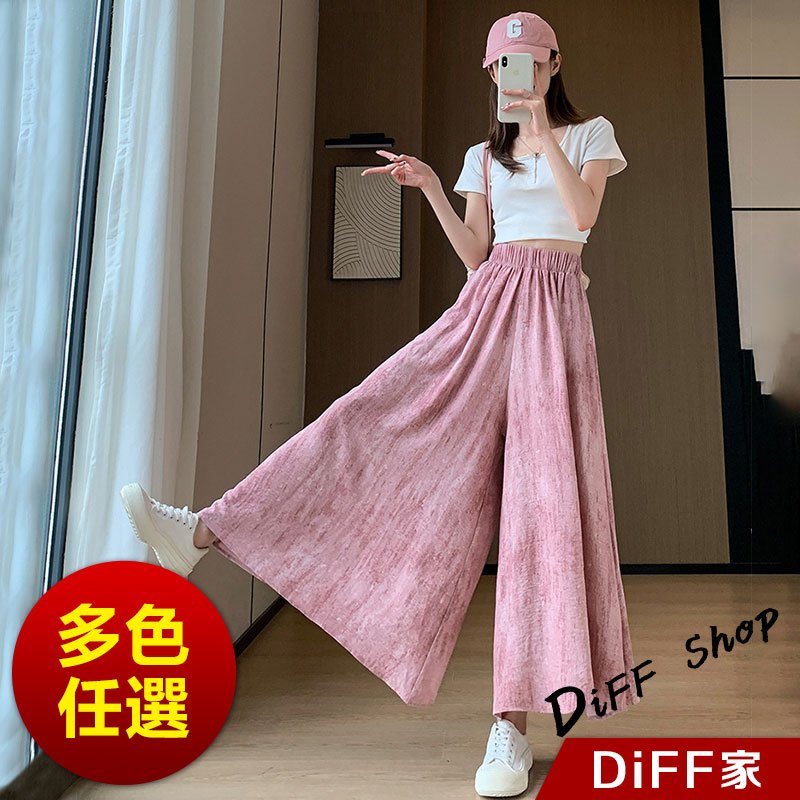 【DIFF】韓版寬鬆休閒冰絲水墨半身褲裙 寬褲 褲子 長褲 休閒褲 女裝 高腰褲 裙子 長裙【P371】【P371】淺卡其|【P371】黑色|【P371】粉色SkortsDiFF shop