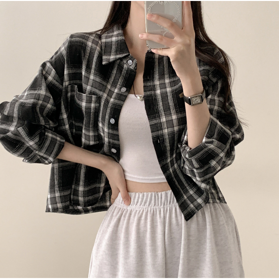 Codibook|韓國 peachmode 鬆身剪裁長袖格紋襯衫[預購]襯衫 女裝海軍藍,FREE|黑色,FREEShirts & BlousesCodibook 韓國女裝購物平台
