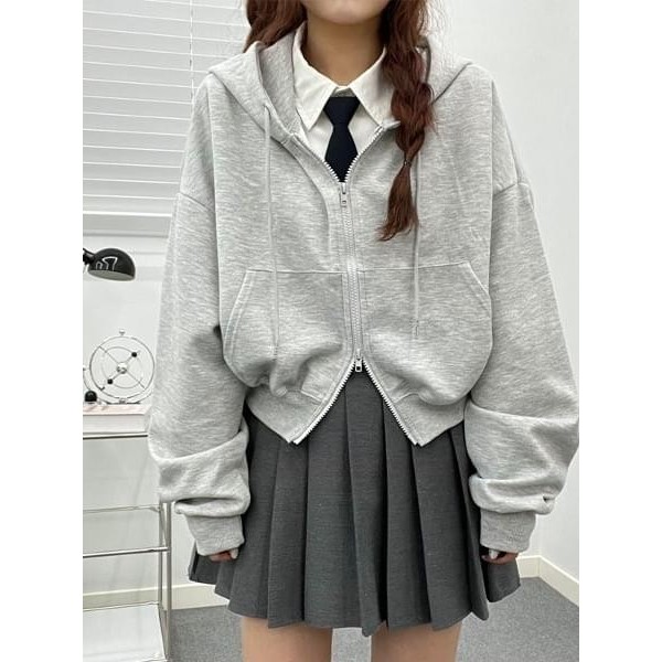 Codibook|韓國 COOKIEMARU 基本款兩穿式連帽外套[預購]拉鍊外套 連帽上衣 女裝白燕麥色|灰色|黑色JacketsCodibook 韓國女裝購物平台