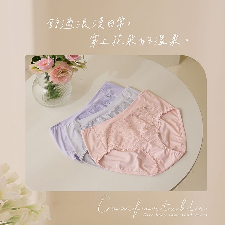 【EASY SHOP】Audrey-柔曲-柔美蕾絲中腰三角內褲-玫瑰粉3L|M|L|LLPantiesEASY SHOP官方直營