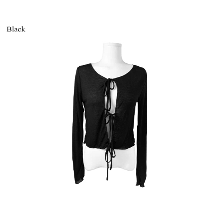Codibook|韓國 anyonemore 卡羅輕薄開襟透視絲帶短版外套[預購]針織外套 皮革外套 女裝free,灰色|free,黑色Winter Jackets & CoatsCodibook 韓國女裝購物平台
