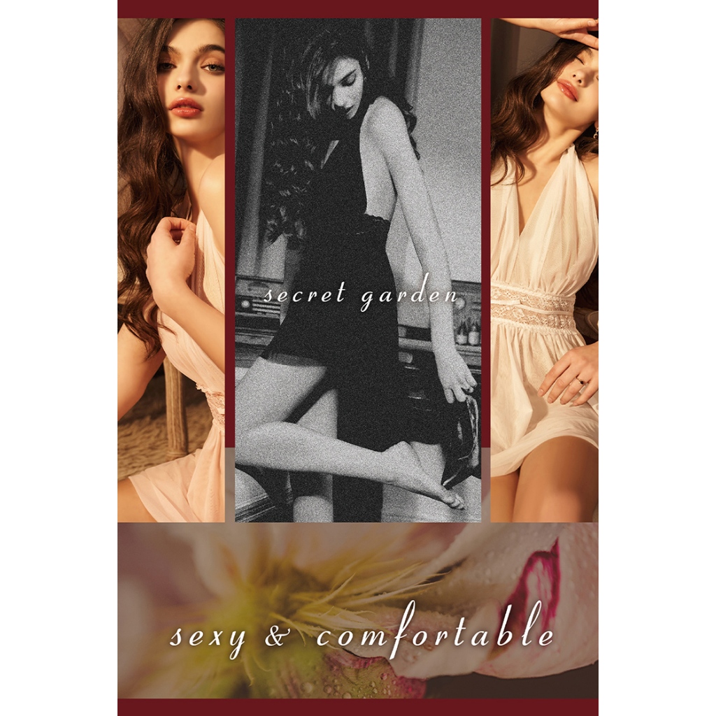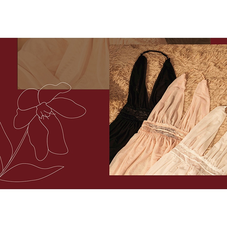 【EASY SHOP】Miss Audrey-妖艷幻境-極深V透膚網紗美背性感睡衣-冷豔白