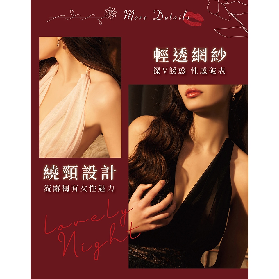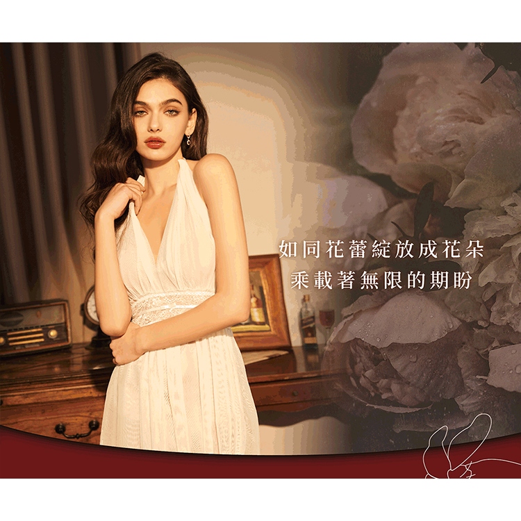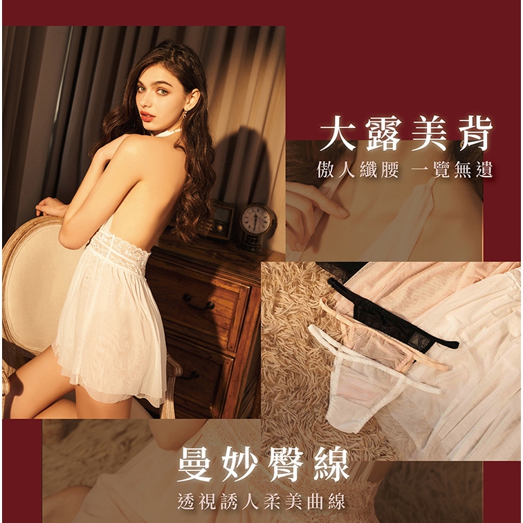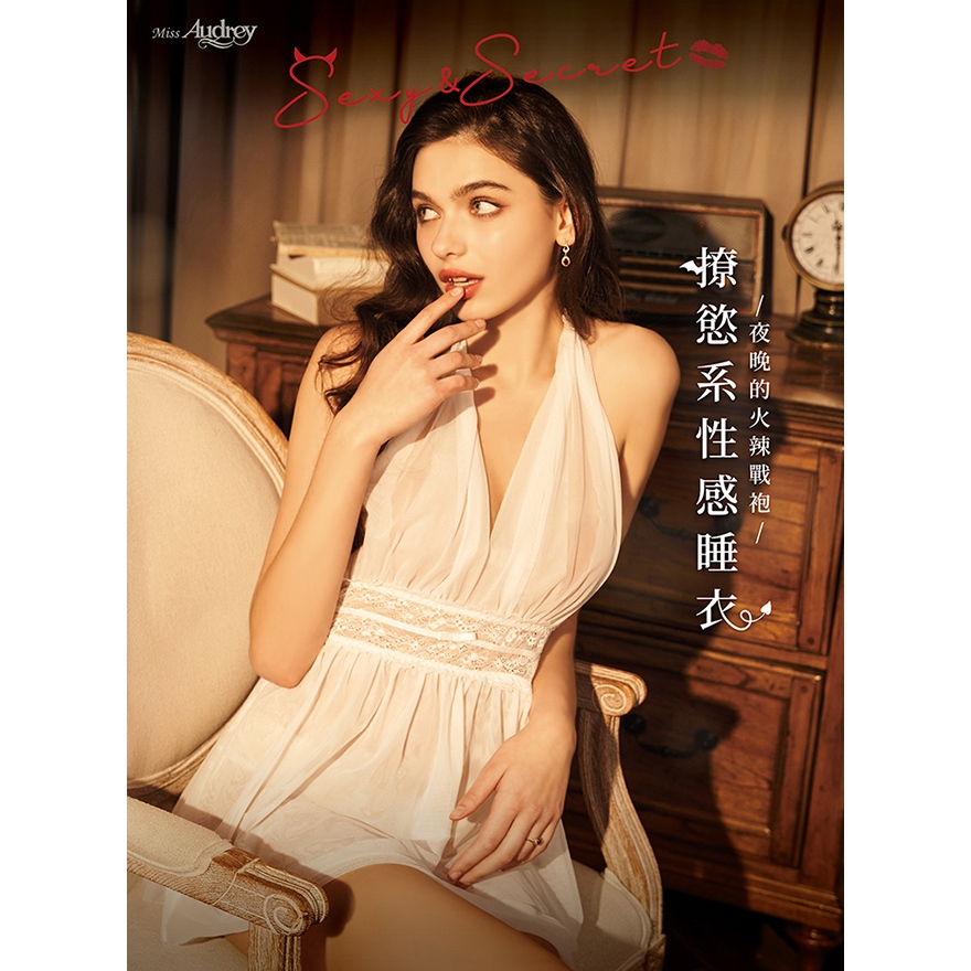 【EASY SHOP】Miss Audrey-妖艷幻境-極深V透膚網紗美背性感睡衣-冷豔白FNight DressesEASY SHOP官方直營