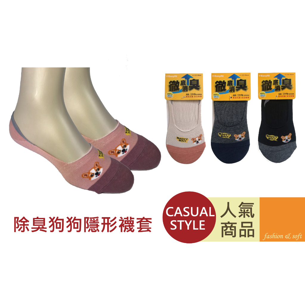 【Easyfit】EF245抗菌除臭狗狗超隱形襪套 (尺寸22-26cm)米色|灰色|粉色|黑色SocksEasyfit 得展棉業(統編89773801)