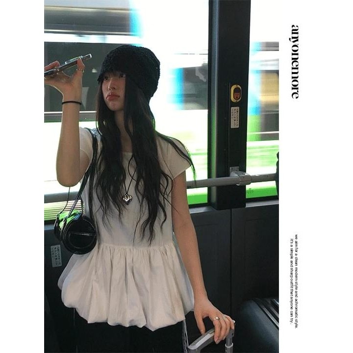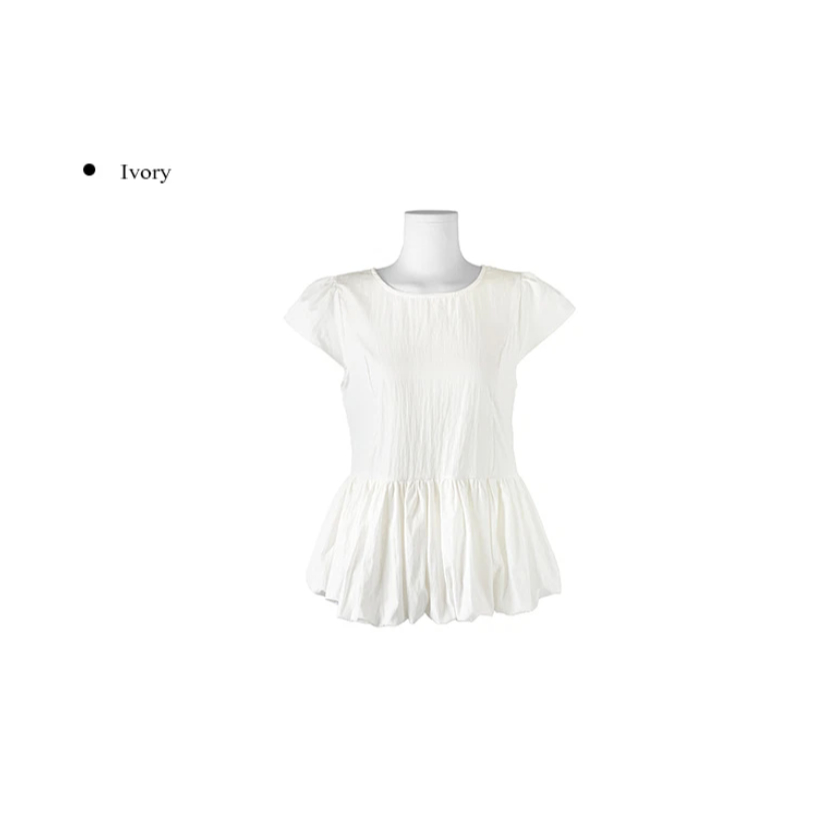 Codibook|韓國 anyonemore 荷葉邊澎袖圓領短袖襯衫[預購]雪紡襯衫 女裝free,象牙白|free,米褐色|free,黑色Shirts & BlousesCodibook 韓國女裝購物平台