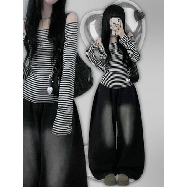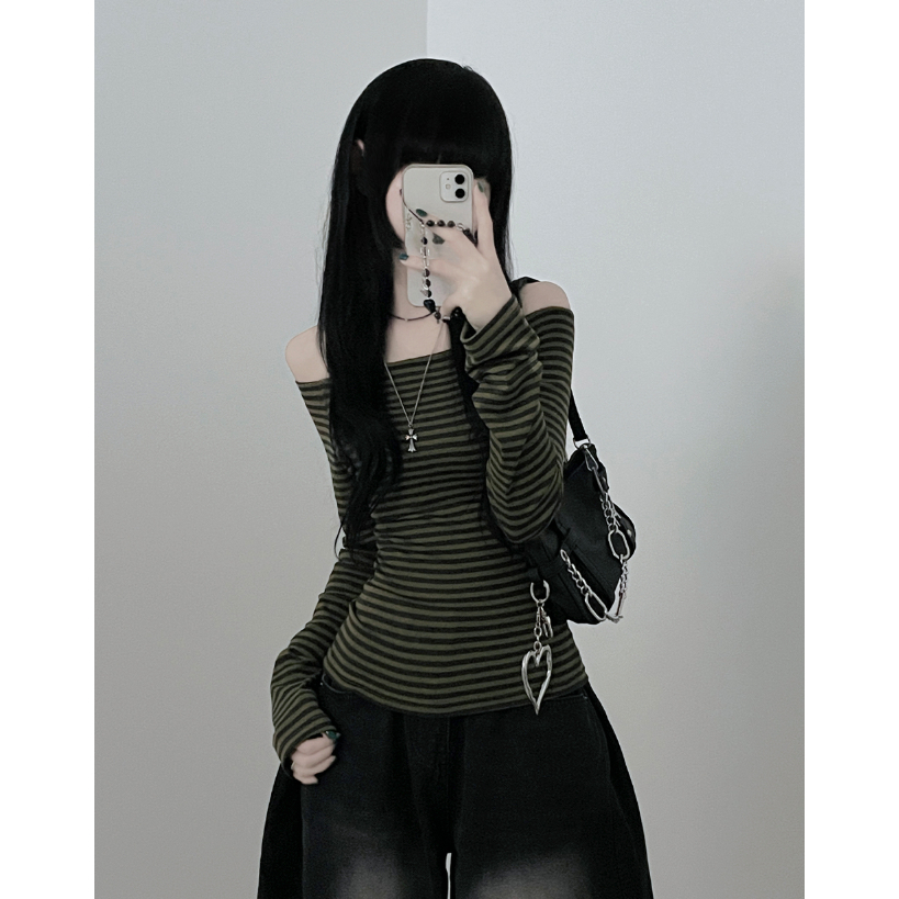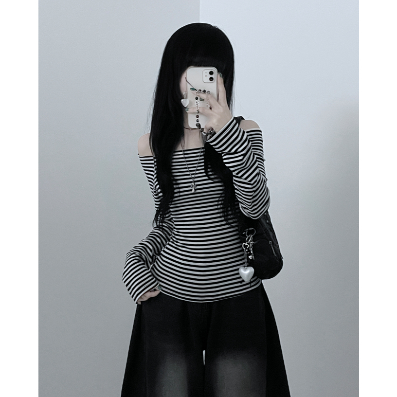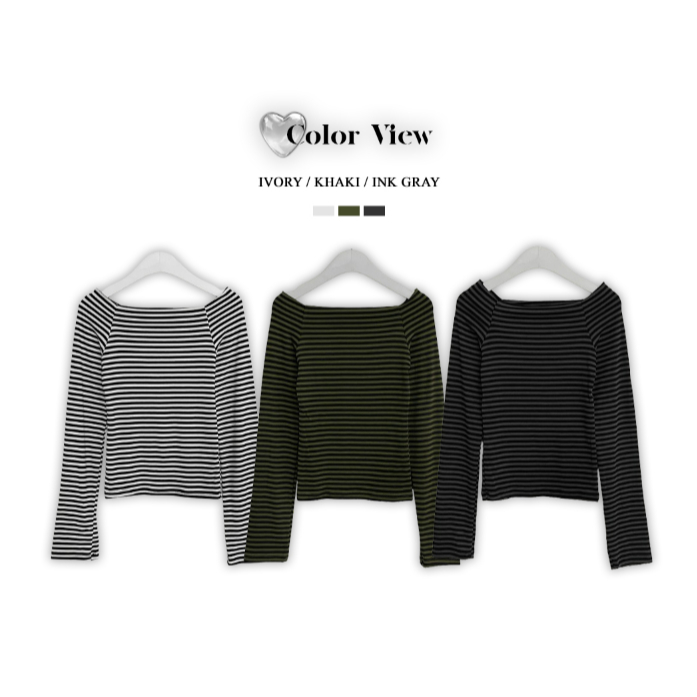 Codibook|韓國 ccomeng 撞色條紋露肩休閒長袖上衣 3色[預購]長袖上衣 女裝象牙白,one size|卡其色,one size|墨色,one sizeT-shirtsCodibook 韓國女裝購物平台