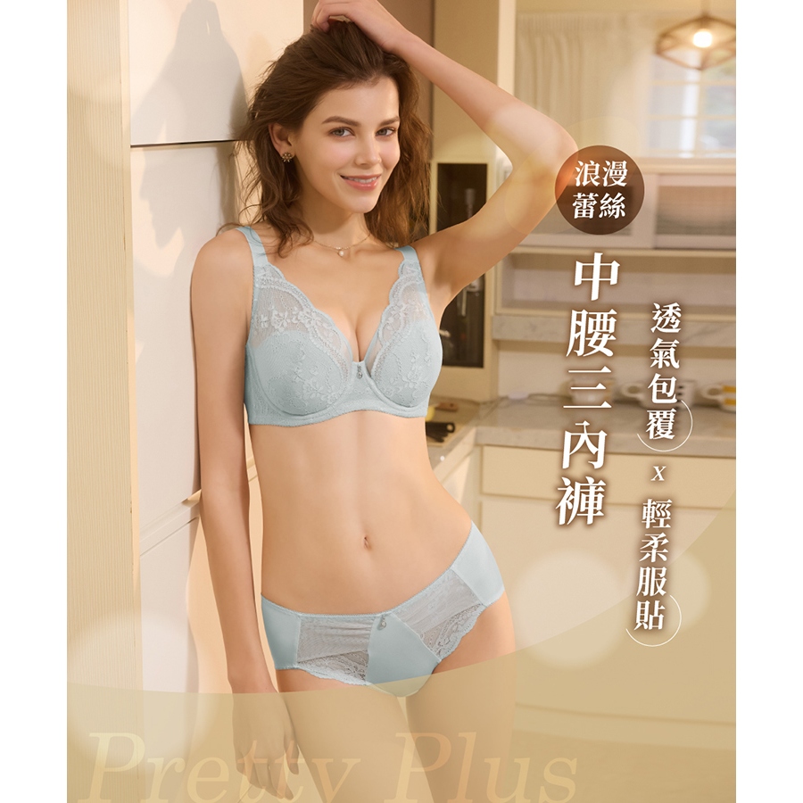 【EASY SHOP】南法微風-蕾絲中腰三角內褲-黎霧藍M|L|LL|3LPantiesEASY SHOP官方直營