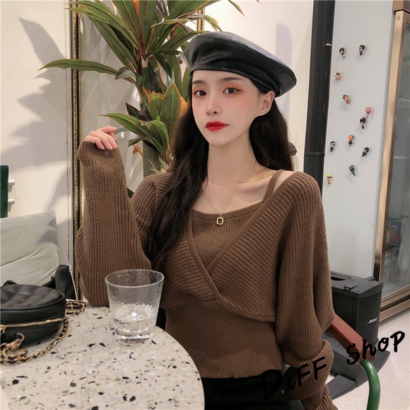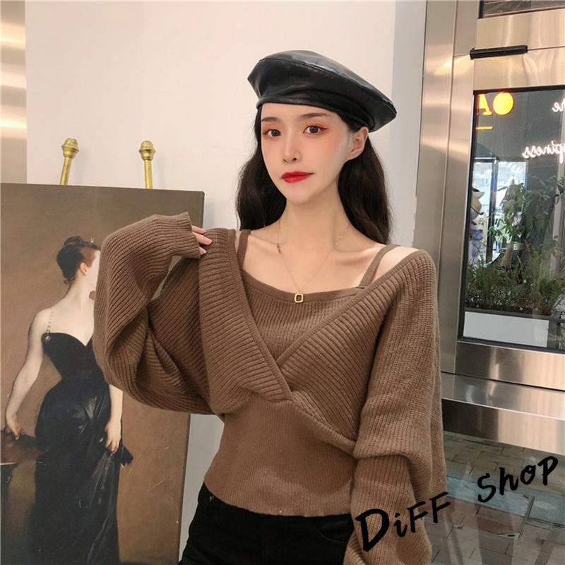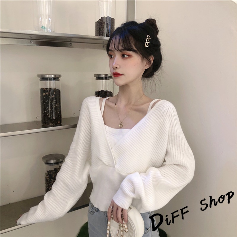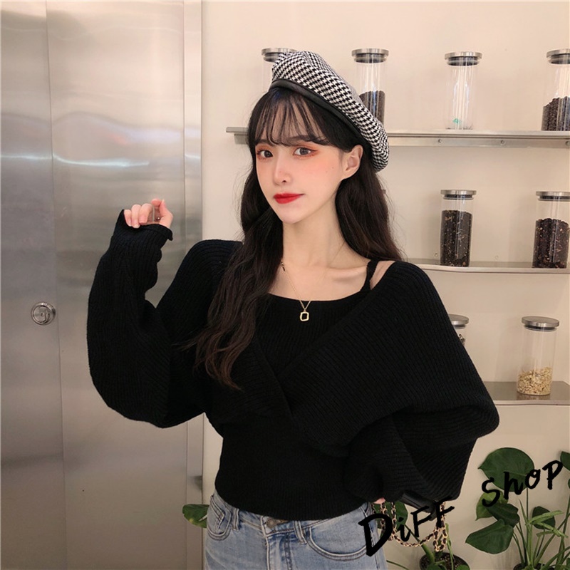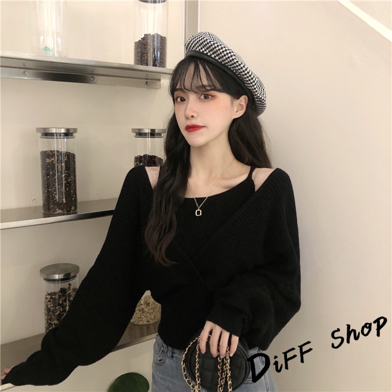 【DIFF】韓版鏤空撞色條紋薄針織外套+短版針織背心 兩件套 套裝 針織上衣 長袖上衣 小可愛 女裝 衣服【S276】【S276】黑色|【S276】杏色|【S276】藏青色Individual SetsDiFF shop