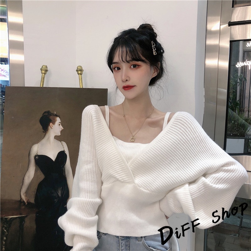 【DIFF】韓版設計感收腰露肩長袖上衣 針織上衣 女裝 衣服 寬鬆上衣 顯瘦上衣 冬裝 長袖t恤 素T 素色【W242】【W242】白色|【W242】黑色|【W242】卡其DiFF shop