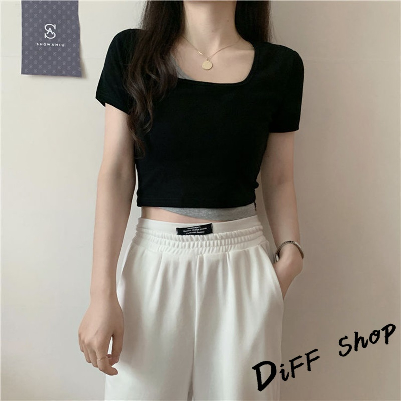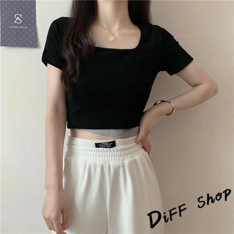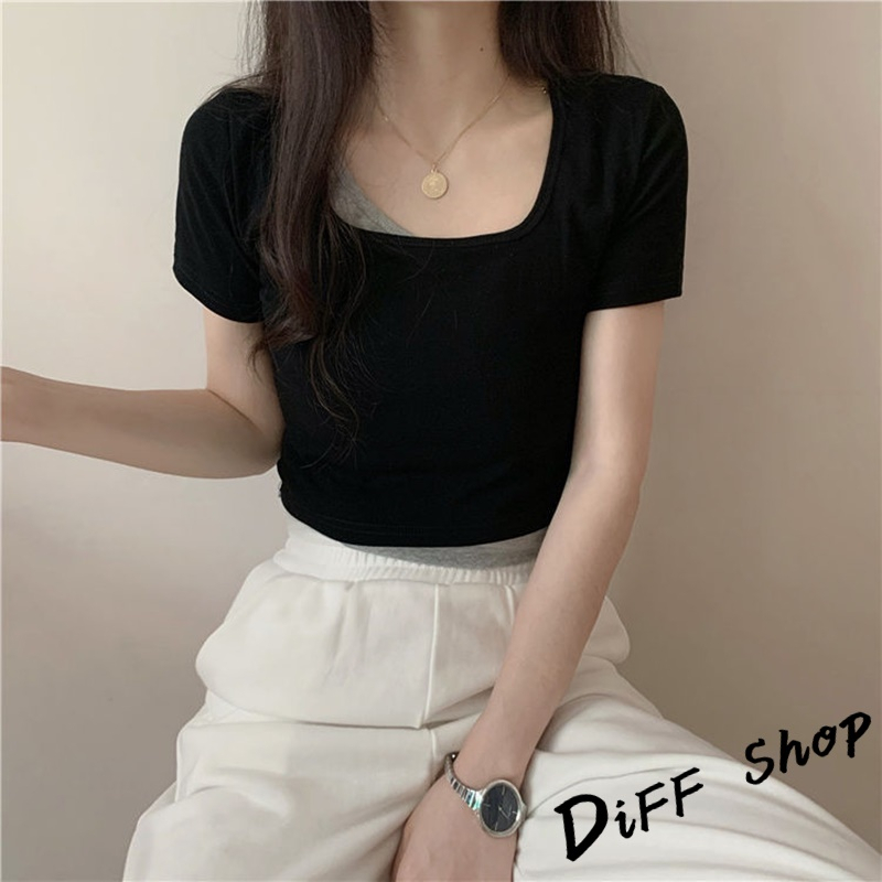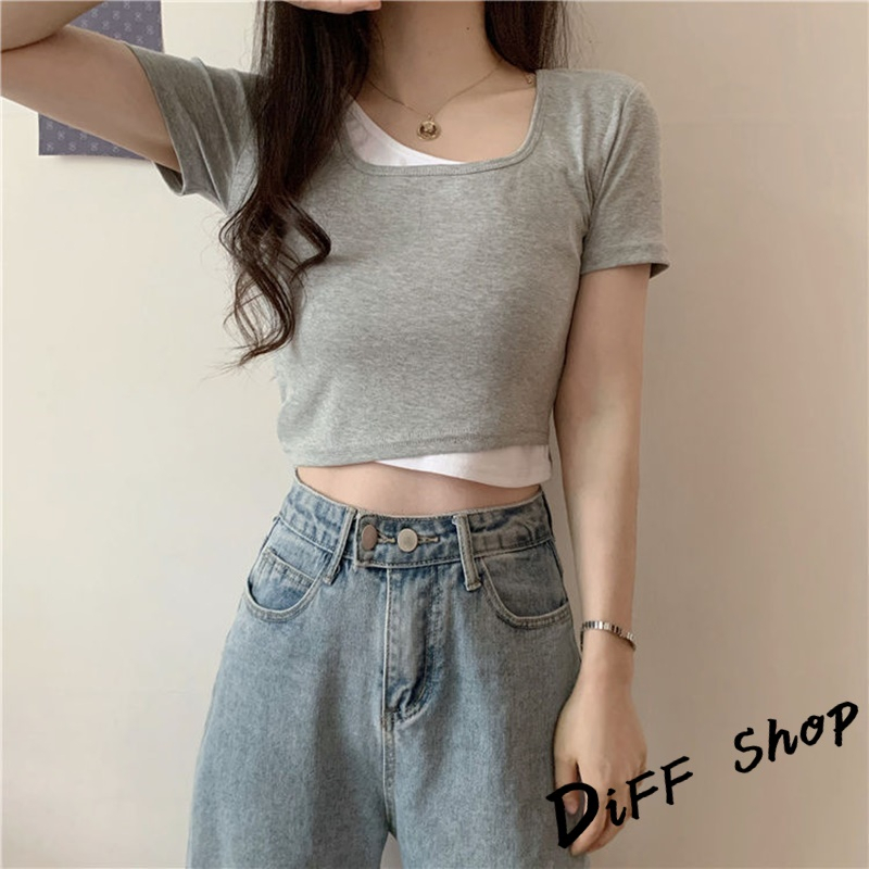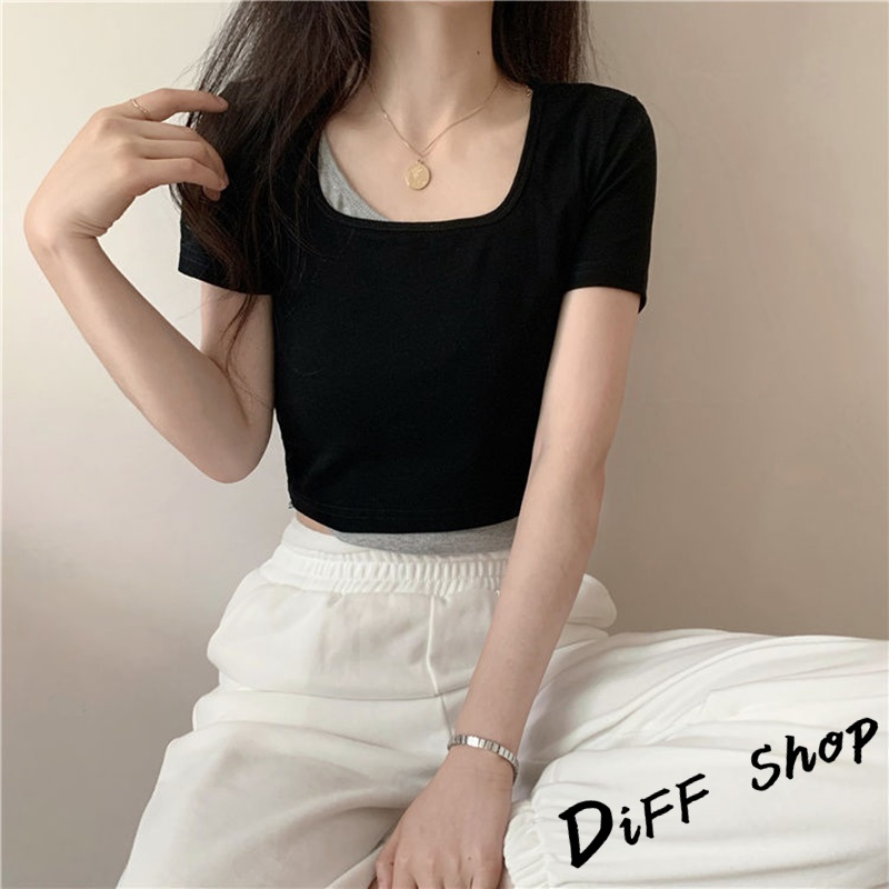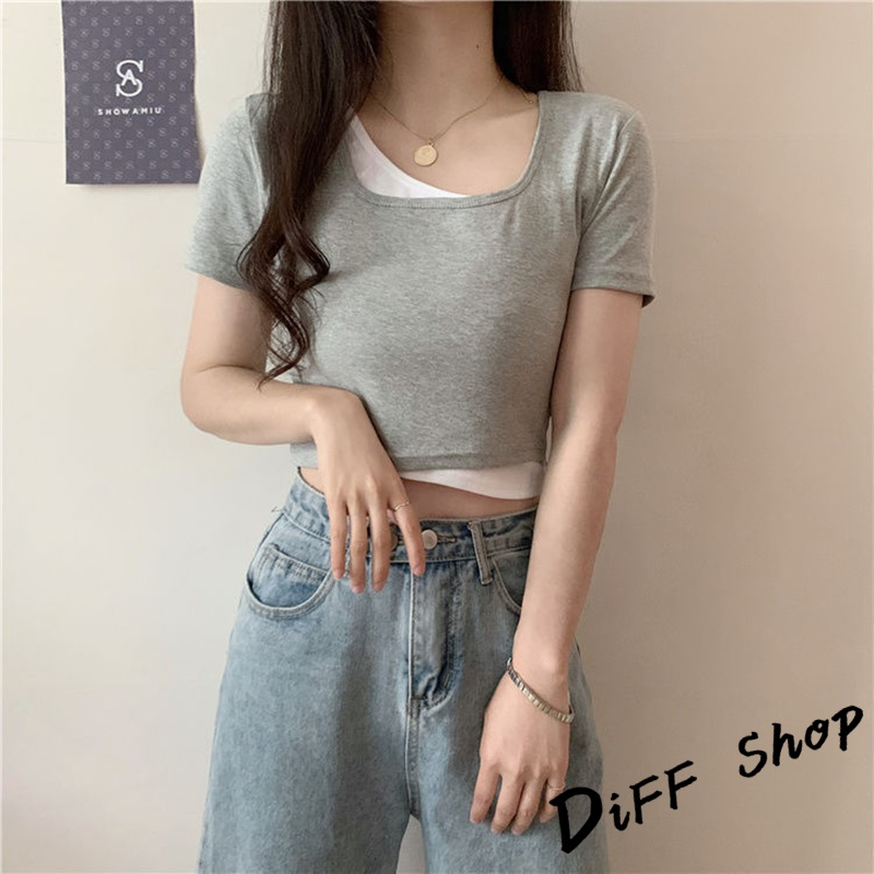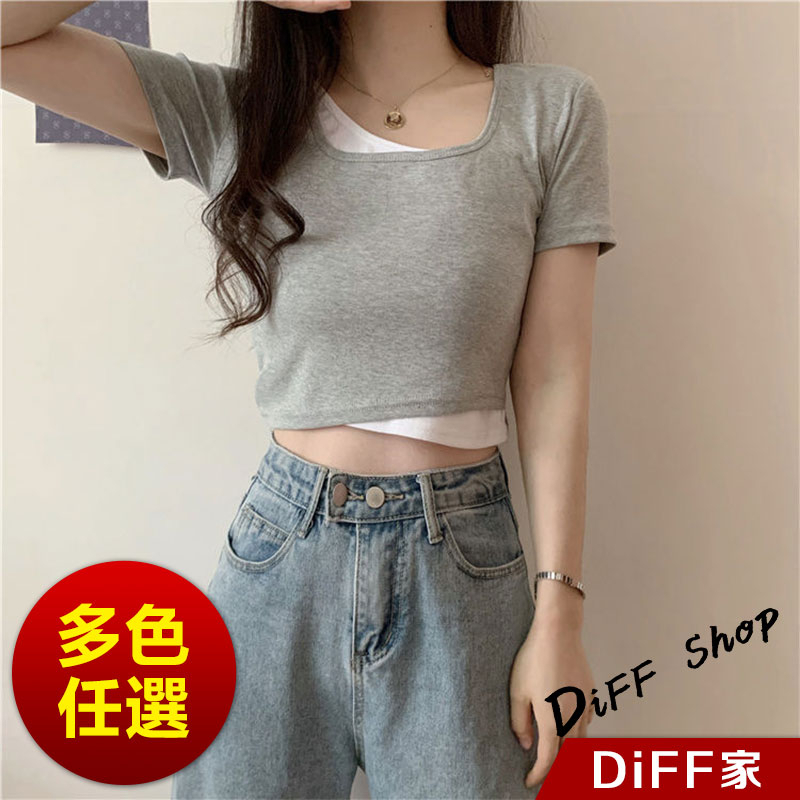 【DIFF】韓版小眾設計感小個子假兩件短版上衣 短袖上衣 短袖t恤 女裝 衣服 寬鬆上衣 素T 短板上衣【T325】【T325】黑色|【T325】灰色|【T325】白色T-shirtsDiFF shop