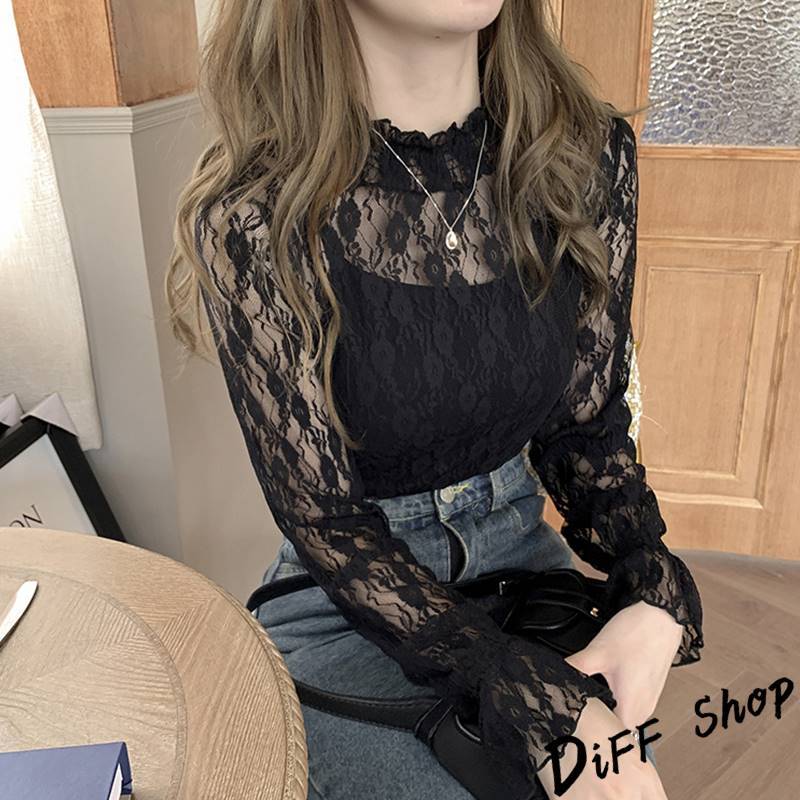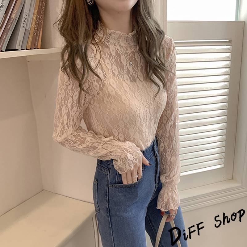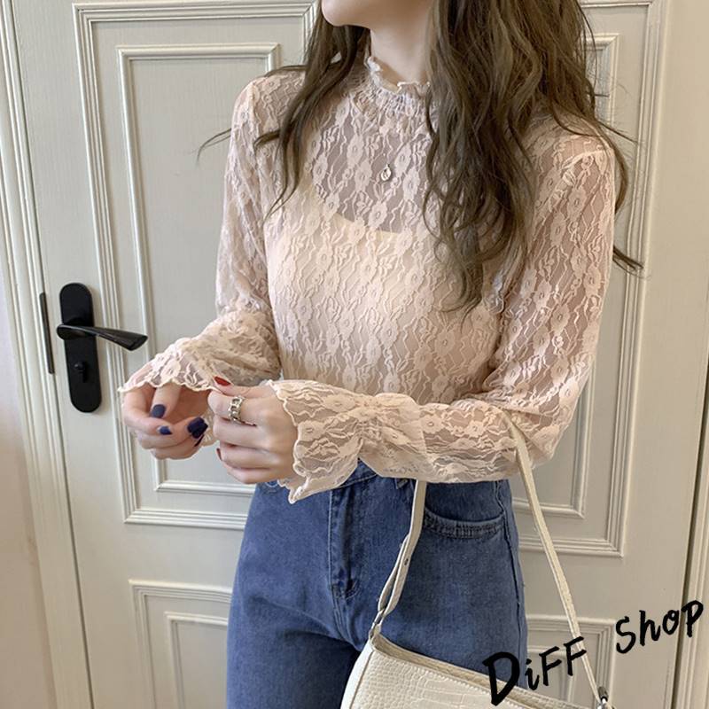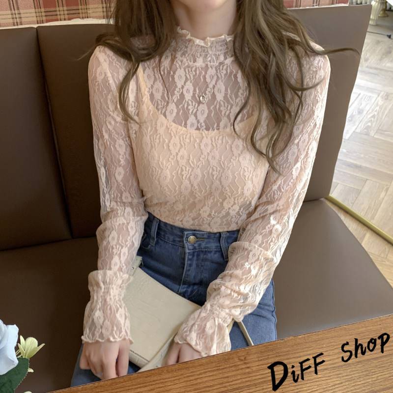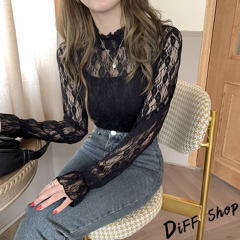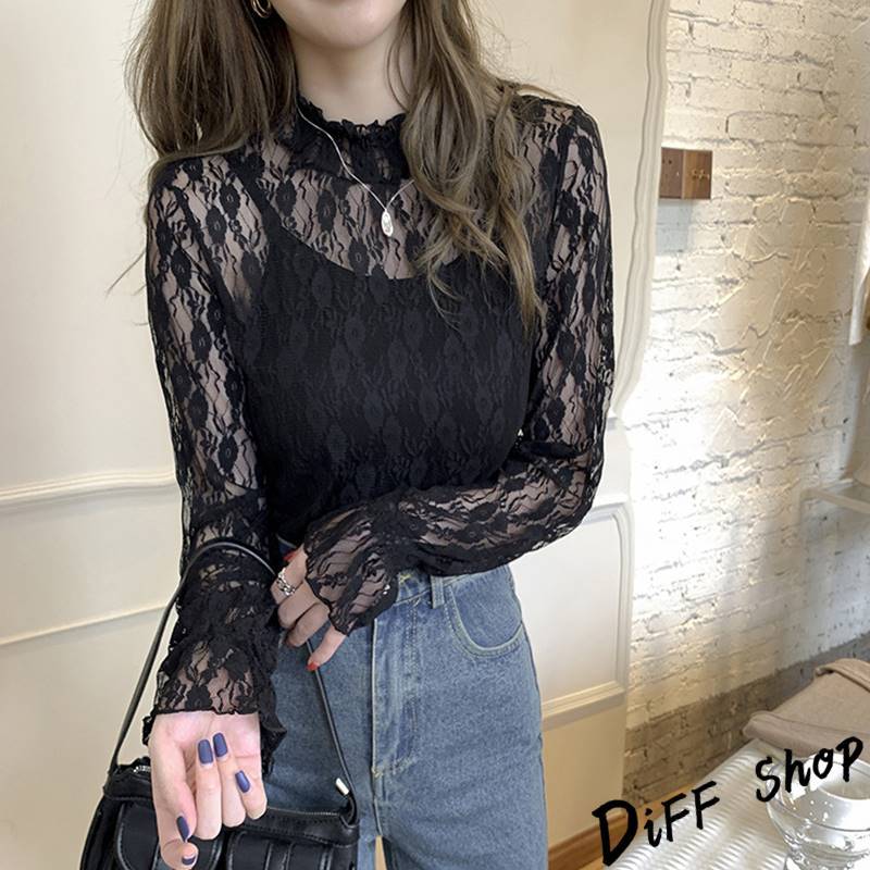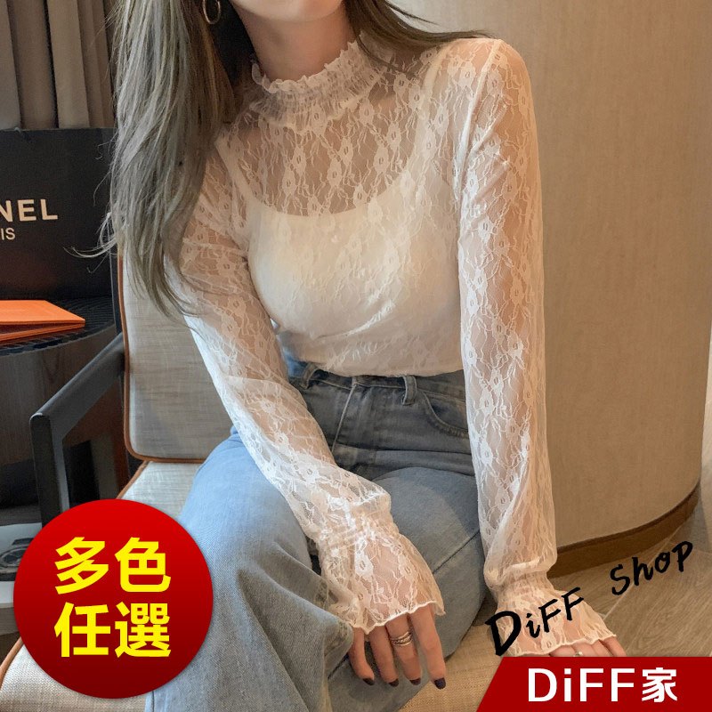 【DIFF】韓版半高領疊穿內搭蕾絲氣質網紗長袖上衣 女裝 衣服 寬鬆上衣 顯瘦上衣 防曬上衣【W507】【W507】白色|【W507】黑色|【W507】杏色OthersDiFF shop