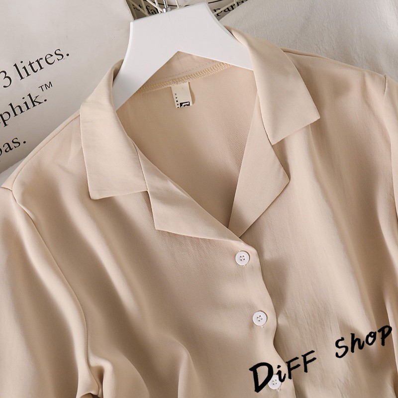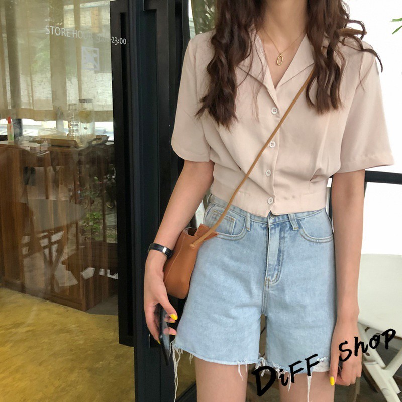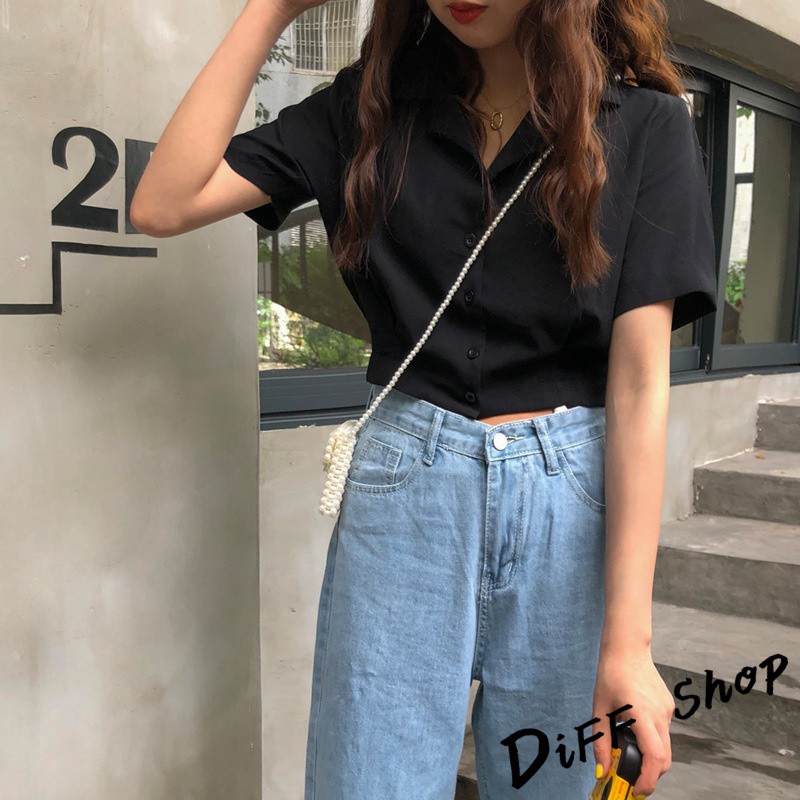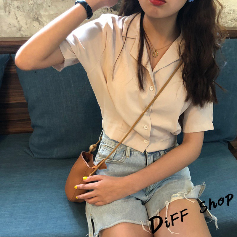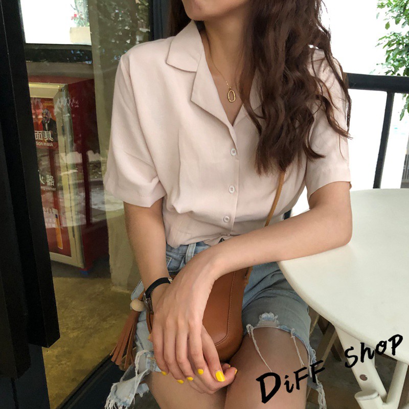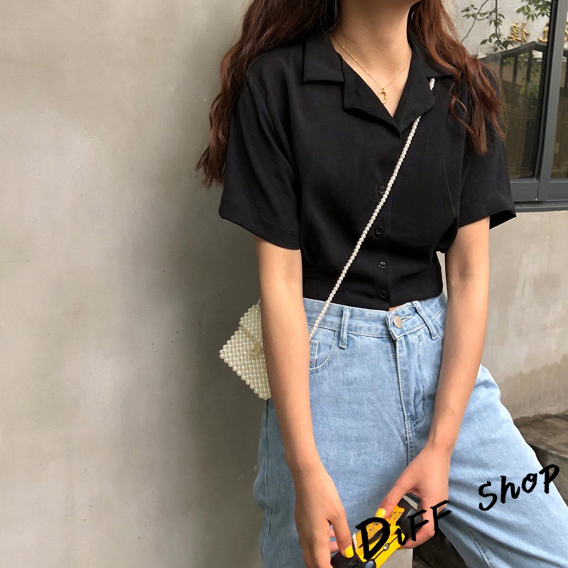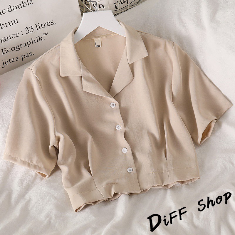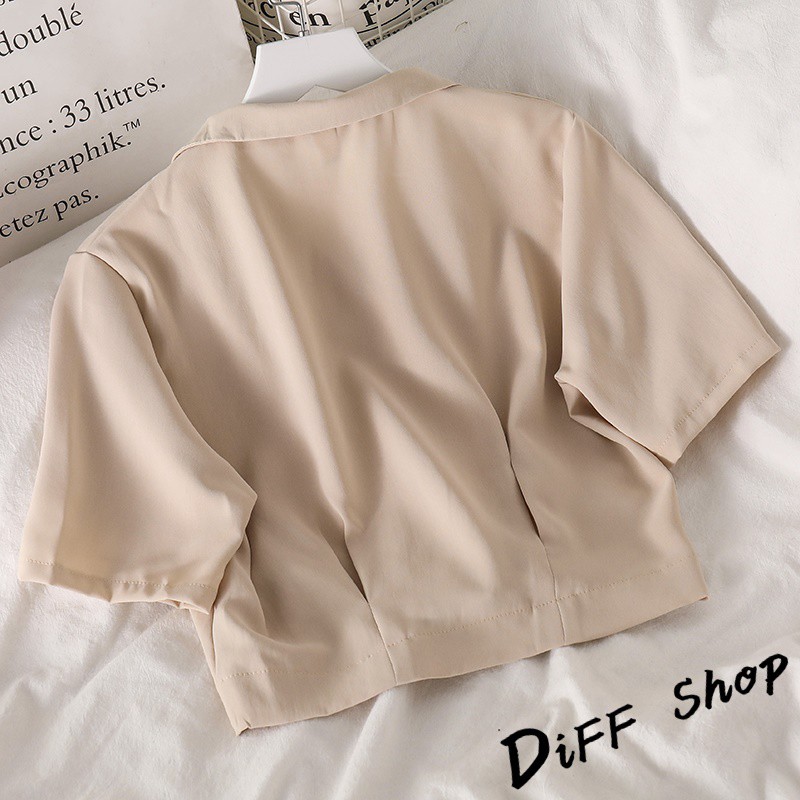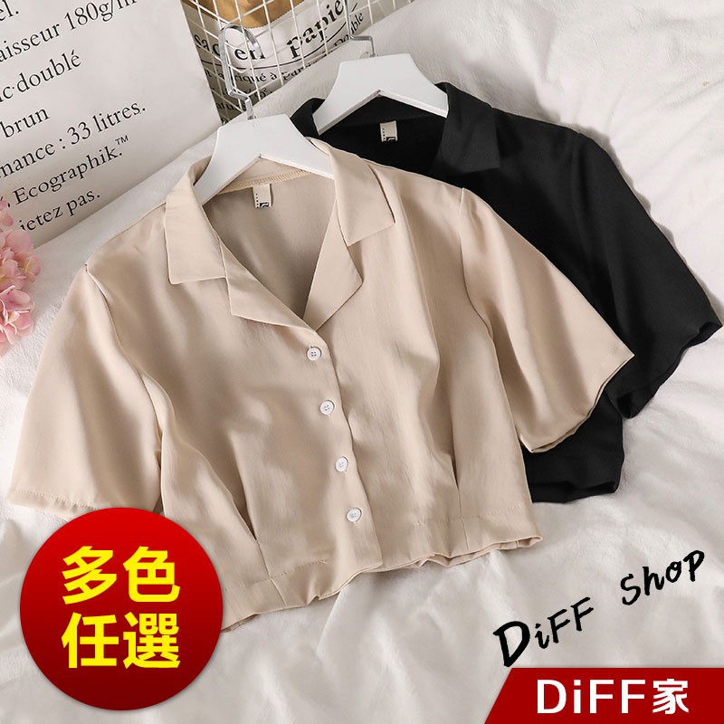 【DIFF】韓版設計感小眾修身顯瘦雪紡短袖襯衫 短版上衣 短袖上衣 短袖t恤 女裝 衣服 素T 短板上衣【T326】【T326】杏色|【T326】黑色Polo ShirtsDiFF shop