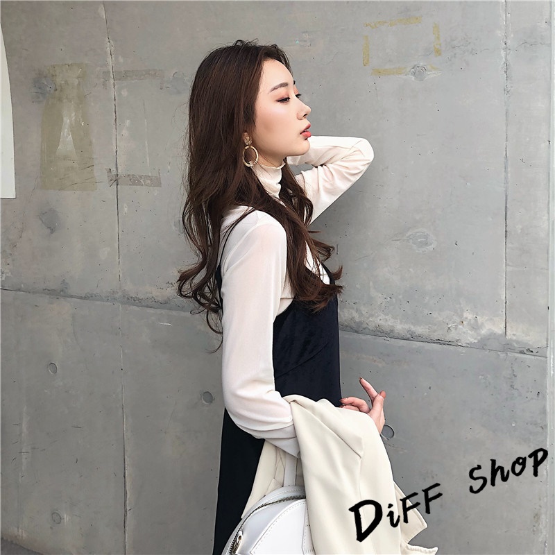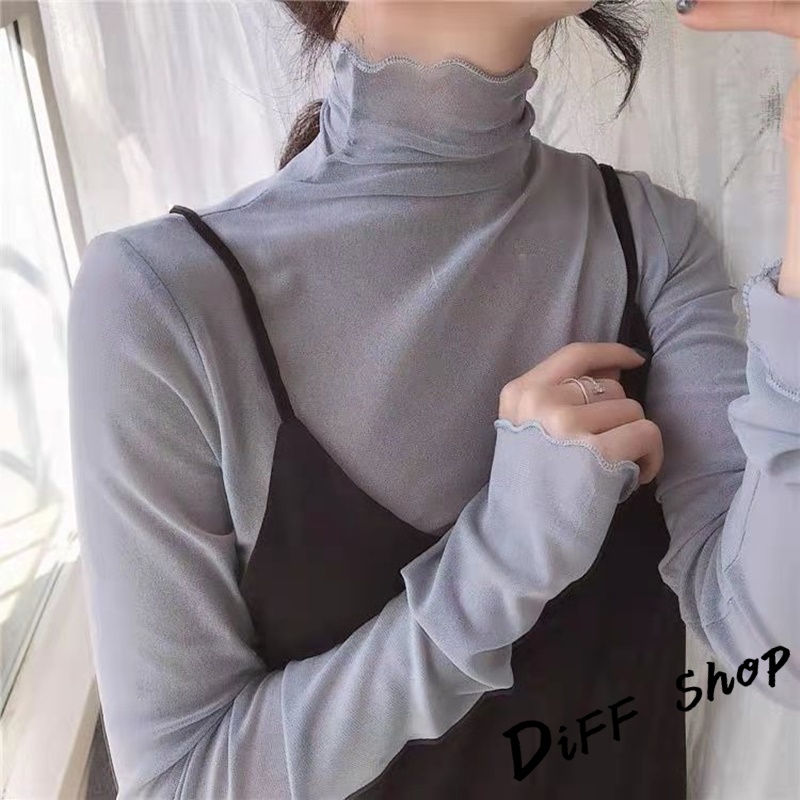 【DIFF】韓版高領內搭親膚薄款網紗長袖上衣 女裝 衣服 寬鬆上衣 顯瘦上衣 長袖t恤 冬裝 素T 素色【W310】