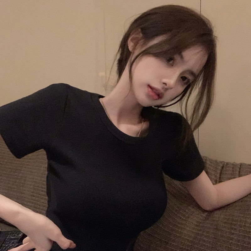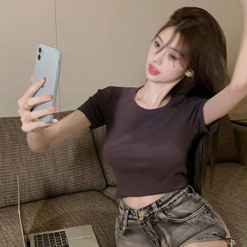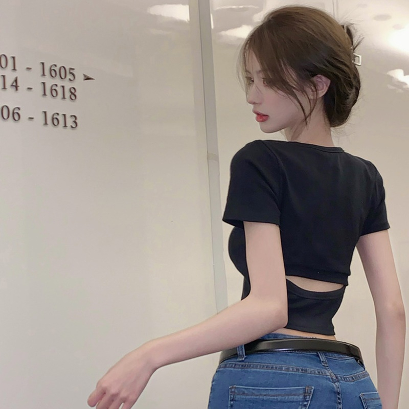 【DIFF】韓版顯瘦小心機露背短版上衣 短袖上衣 短袖t恤 女裝 顯瘦上衣 衣服 寬鬆上衣 素T 短板上衣【T525】【T525】白色|【T525】黑色|【T525】深灰T-shirtsDiFF shop